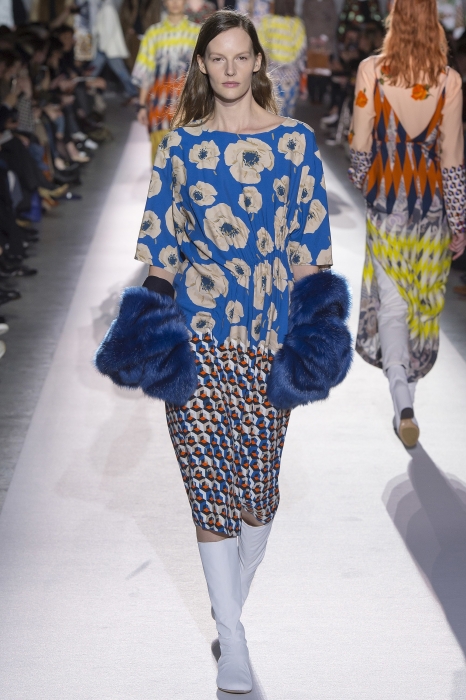 Коллекция была показана на юбилейном сотом шоу Дриса Ван Нотена в Париже, где он собрал 54 модели, которые участвовали в его показах с 1993 года, и основные коды бренда — ситец, японские национальные костюмы, английские розы, икат и треугольники 1960-х. Увидеть ретроспективную коллекцию почти целиком можно на 3 этаже ДЛТ уже сегодня.