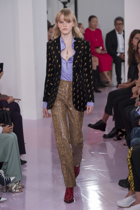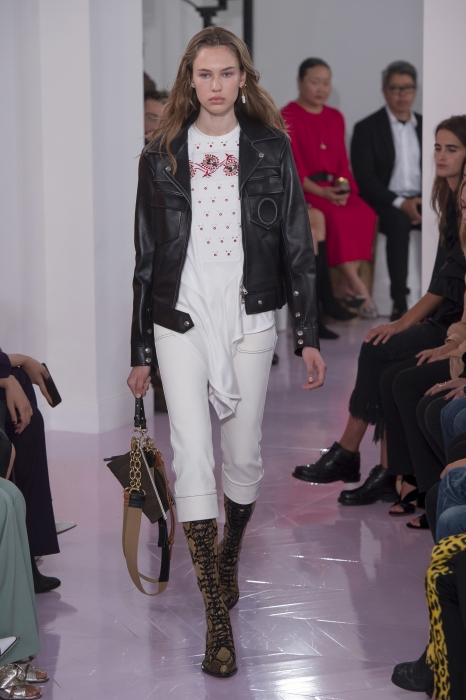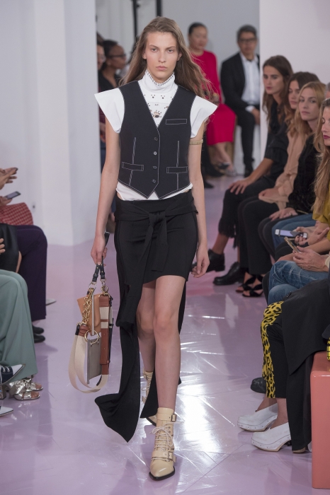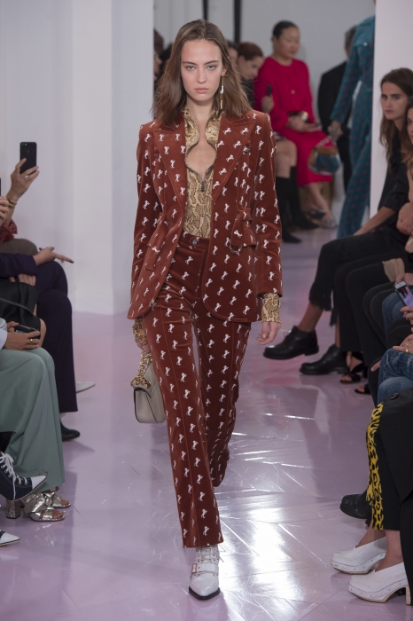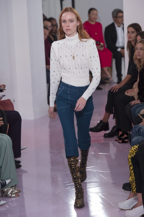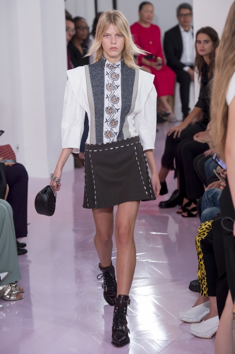 В Париже прошел показ марки Chloé — той самой, что делает одни из вкуснейших парфюмов и кутюрные сарафаны на лето, а в начале года осталась без креативного директора Клэр Уэйт Келлер (сейчас она работает в Givenchy и выпускает кампейны с котиками вместо одежды). На смену ей в марте пришла Наташа Рамсей-Леви, которая раньше работала с Николя Гескьером в Balenciaga и Louis Vuitton. Теперь дизайнер сидел на первом ряду и рукоплескал своей ученице — ее дебютная коллекция с перфорированными блузами, юбками с изнаночными швами и платьями с рюшами в стиле фламенко получилась очень красивой.