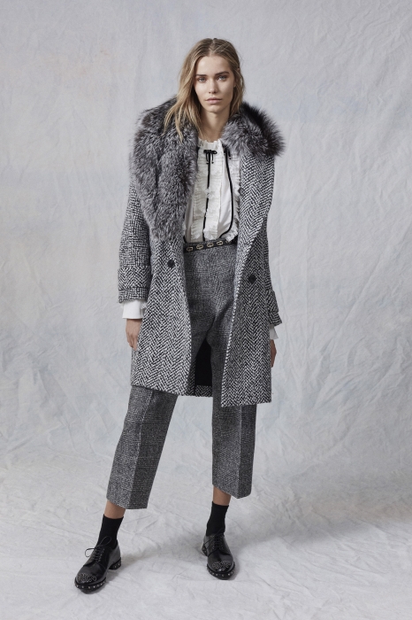 Осенне-зимняя коллекция марки посвящена диалогу между мужским и женским дресс-кодом. В ней и стиль милитари, и дубленки-косухи, и новые вариации легендарной сине-голубой клетки «принц Уэльский». Согласно новому лукбуку на классические костюмы с фрачными лацканами можно накинуть оверсайз-пальто, на кружевное платье — парку. К зимним образам подойдут ботфорты на плоской подошве или броуги, декорированные клепками, а мужский стиль смягчат шпильки.