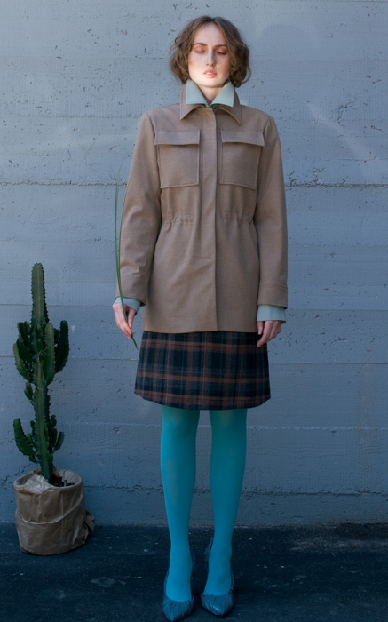 Источником вдохновения для дизайнера Натальи Полуниной послужила эпоха 1960-70-х — время кибернетики и первых полетов в космос. Отсюда в коллекции лаконичность, конструктивистские мотивы и вещи, которые легко трансформировать. Так, юбки с запахом с одной стороны однотонные, с другой — украшены абстрактным принтом, а светло-серые блузы превращаются в пепельно-розовые. В духе ретро скроены платья длины миди, клетчатые юбки-трапеции и сарафаны-футляры. А в качестве верхней одежды Belka предлагает носить классические для научной фантастики куртки защитного цвета.
