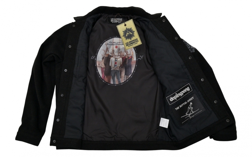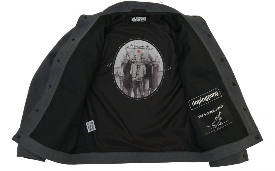 Арт-группа Doping-Pong и омский бренд The Dostoevsky Jacket объединились для создания серии жакетов — с символами Петербурга и образом «Новых декабристов». Главный принт, который спрятан на подкладке куртки, повторяет картину «Où sont les Nouveaux Décembristes» («Где вы, новые декабристы?»), нарисованную Doping-Pong в 2009-м с целью напомнить молодежи о неудавшемся восстании русских аристократов.