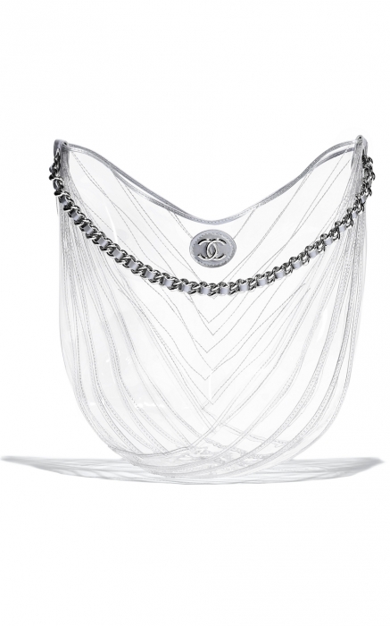 Абсолютно прозрачная сумка Chanel — квинтэссенция тенденций: пластик этой весной котируется модниками выше, чем кожа и винил, а демонстрация содержимого хобо говорит о вашей открытости миру и новой искренности. (Chanel)