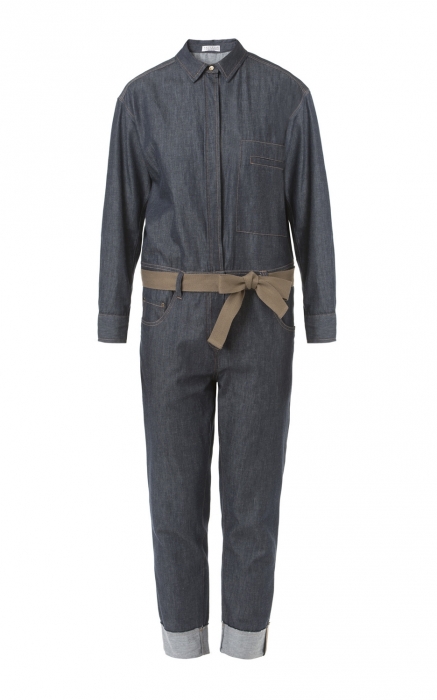 Комбинезон Brunello Cucinelli из, казалось бы, демократичной джинсы только прикидывается рабочим костюмом американского фермера: фактура ткани доведена до идеала, а сидеть он будет не хуже смокинга. (Brunello Cucinelli)
