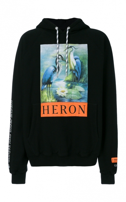 Дизайнер Херон Престон вышел из-под крыла Yeezy Канье Уэста — и тут же прославил новехонькую марку имени себя выведенным кириллицей словом «стиль». Во второй коллекции без русского языка тоже не обошлось, но на худи теперь крупно выведено еще и имя Heron. (DayNight)