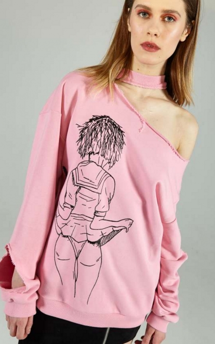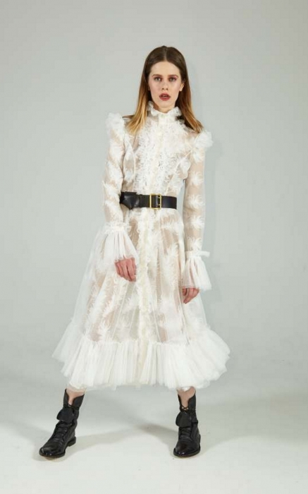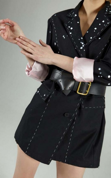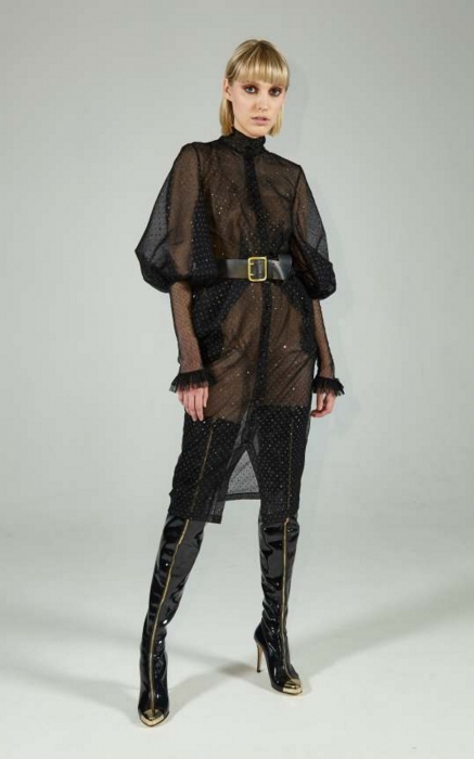 Коллекцию на эту весну Алина Герман выпустила еще год назад: пижамы в пайетках, платья с перьями, мерч с Guns N’Roses и футболки с проколотыми сосками уже ждут своего часа в гардеробах главных див инстаграма. Не успев выгулять новые вещи, они получили «на смену» новую линейку — с миксом глиттера, позолоты и кружева, строго-настрого перетянутым кожаным ремнем.