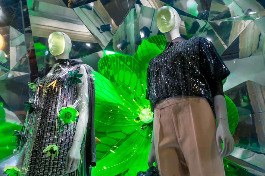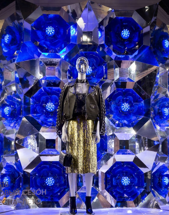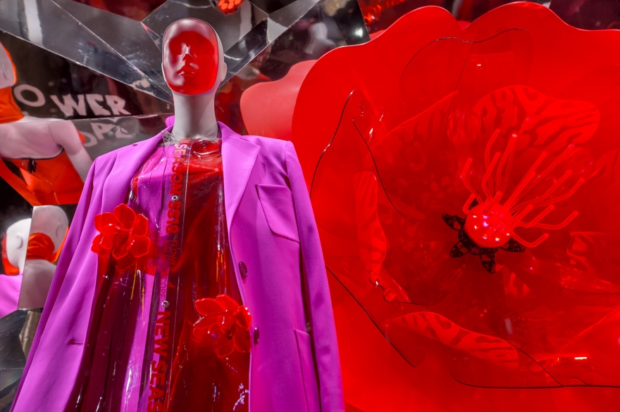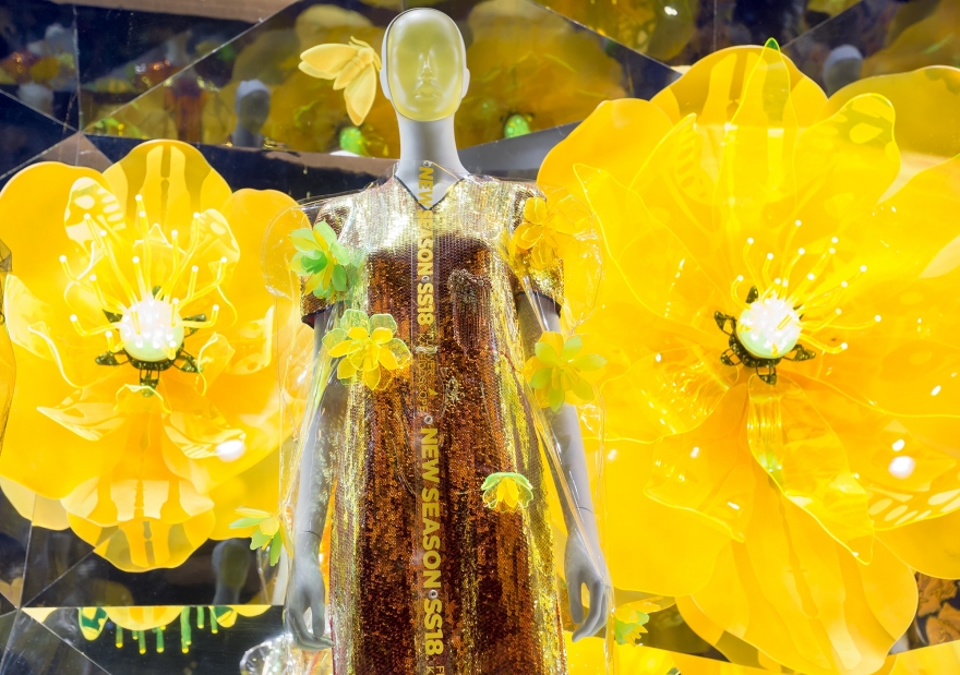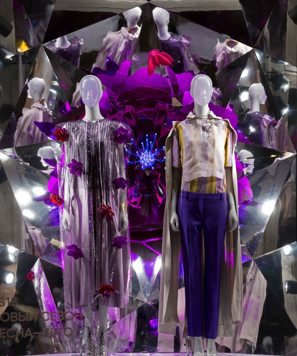 На смену голливудским декорациям в универмаге ДЛТ (с золотым самолетом, роялем и сценами из кинофильмов 1920-х) пришли гигантские цветы и тонны пластика. Именно так креативная команда фэшн-мекки решила анонсировать тенденции весенне-летнего сезона: изготовленные вручную 84 бутона диаметром от 55 до 180 см отражают цветочный бум в дизайнерских коллекциях, а футуристичные калейдоскопы — злоупотребление прозрачностью и серебристым цветом.