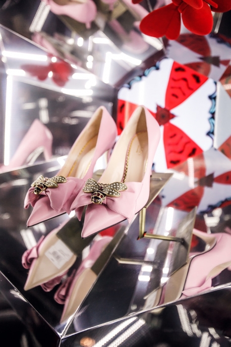 Инсталляции, посвященные новому сезону и юбилею универмага (он празднует 110 лет с момента своего основания!), расположены и внутри ДЛТ — вместе со стилизованными манекенами и хитами с показов Dolce & Gabbana, Dries Van Noten, Gucci, Balenciaga и Oscar de la Renta. Этой весной на Большой Конюшенной появились и новые марки: Versace, Jacquemus, J.W. Anderson, Heron Preston, Roland Mouret, Giorgio Armani и Terekhov Girl, а также второй в России корнер домашней парфюмерии Dr. Vranjes.