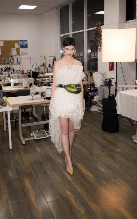Дизайнер марки Никита Моисеенко на этот раз совместил спорт и образ деловой женщины, замешав офисный пиджак с велосипедками, клетчатое пальто с фирменной бейсболкой, гранжевое платье с лодочками «как у мамы» и выпускной наряд с поясной сумкой. В таких образах можно просидеть семь часов на рабочем месте, а потом (без ущерба для внешнего вида и траты времени) выйти в найт-лайф. Но самые классные вещи в коллекции, за которыми мы готовы выстроиться в очередь перед Au Pont Rouge, — переливающиеся дутые куртки, абсолютно прозрачные топы и деконструированные белые сорочки. Некоторые из этих моделей приедут в Петербург в начале осени и будут стоить от 10 000 до 25 000 рублей.