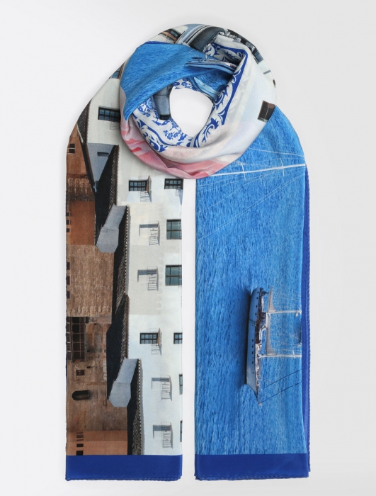 В основе дизайна двенадцати предметов летнего гардероба – архивные фотографии итальянского фотографа Миколь Саббадини, сделанные во время путешествия по островам Эгейского моря. Художественные снимки белоснежных домов, дрейфующих парусников и пионов комбинируются со средиземноморскими орнаментами и цветочными узорами. Палитра платьев, юбок, рубашек, брюк и аксессуаров строится на сочетании белого, синего и розового цветов.