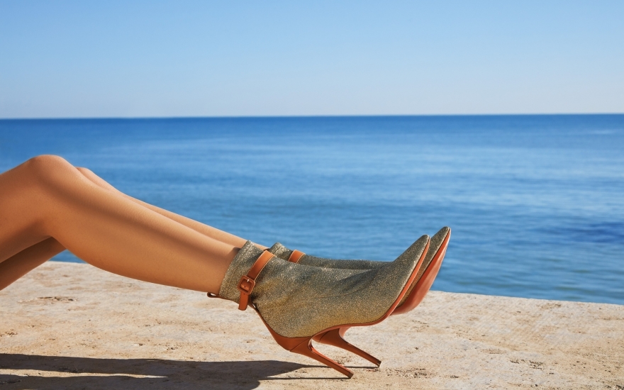 Дизайнеры итальянского обувного дома отправляют свою героиню в морской круиз, а в чемодан предлагают упаковать туфли из кожи питона и сандалии с кристаллами для пати на яхтах, сникерсы на пробковой подошве – для прогулок по побережью.