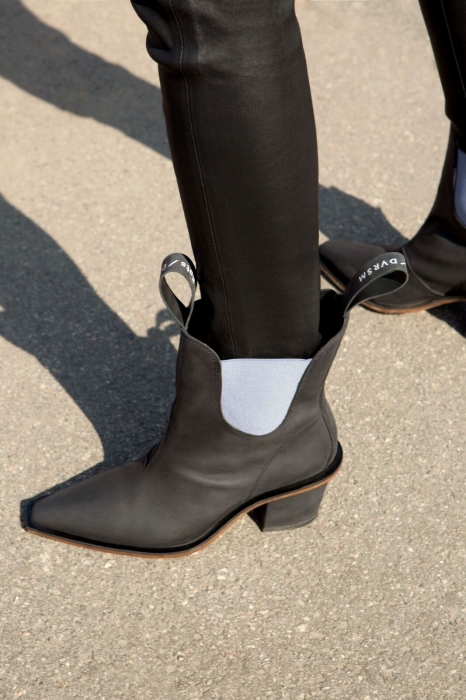 В весеннюю коллекцию Bats также вошла коллаборация с обувной маркой DVRSM: челси и ботинки с удобной колодкой дизайнеры разрабатывали на протяжении целых трех месяцев. Чтобы обувь было легко надевать и снимать, застежки и шнурки заменили на эластичные вставки, а чтобы она держала форму и прослужила не пару сезонов, а пару лет, в качестве материала выбрали коровью кожу. Челси стоят 16 800 рублей, ботинки на каблуке — 25 000 рублей, берет — 4700 рублей, а куртки и плащ — от 34 700 до 63 250 рублей. Купить их можно на сайте марки или оффлайн: Bats продается в магазине 8-store на Новой Голландии.