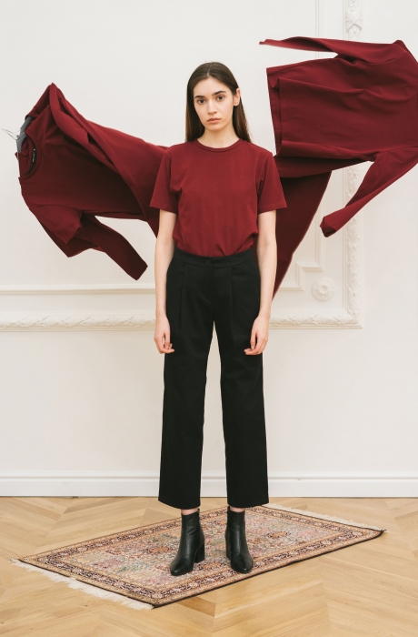 Лауреат нашей премии «ТОП 50. Самые знаменитые люди Петербурга-2017» Нелли Недре продолжает продвигать культуру базовых вещей: в своей новой коллекции на весну-лето она показала, что даже простая однотонная рубашка может смотреться по-разному за счет деталей. При поднятом вороте образ кажется расслабленным и рок-н-ролльным (идеально — носить со стейтмент-футболкой и тяжелыми аксессуарами), при прямом — более классическим и официальным. Такие же манипуляции Нелли проделывает с юбками, которые превращаются в платья, и жакетами, которые можно использовать как резинки для волос. Во всей коллекции порядка 15 разных вещей, в том числе футболки, костюмы, бадлоны и классные дождевики.