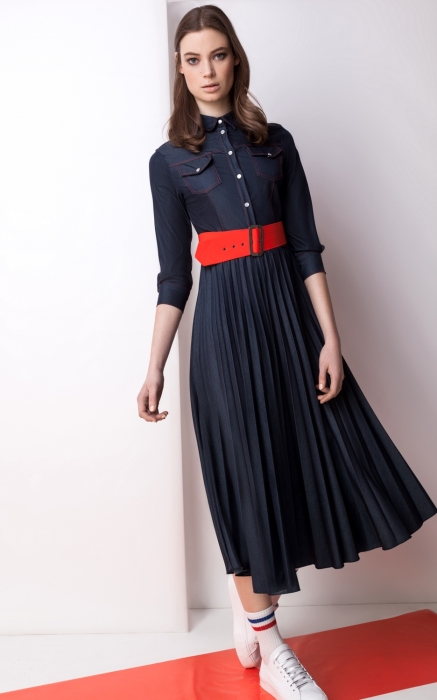 Плиссированное платье из денима Paolo Casalini обречено стать вашим любимым на весну: с каблуком и контрастным поясом — в театр, с кедами — на велосипед. (Paolo Casalini)
