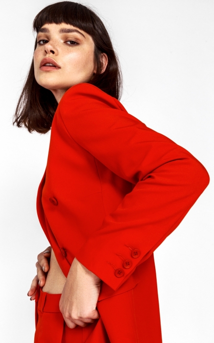 Из свободных пиджаков и белоснежных рубашек дизайнера марки Mosqueena Наташи Скрибо легко собрать правильный базовый гардероб, гвоздем которого станут алый костюм и белоснежный тренчкот. (Mosqueena)
