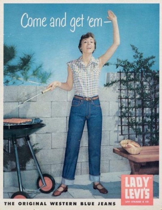 В 1934 году Levi’s выпустил первые женские джинсы. Они были созданы по типу мужской модели 501 (c пятью карманами, «грубыми» швами и оторочкой под названием «клюв орла»), только с более прилегающим поясом. |