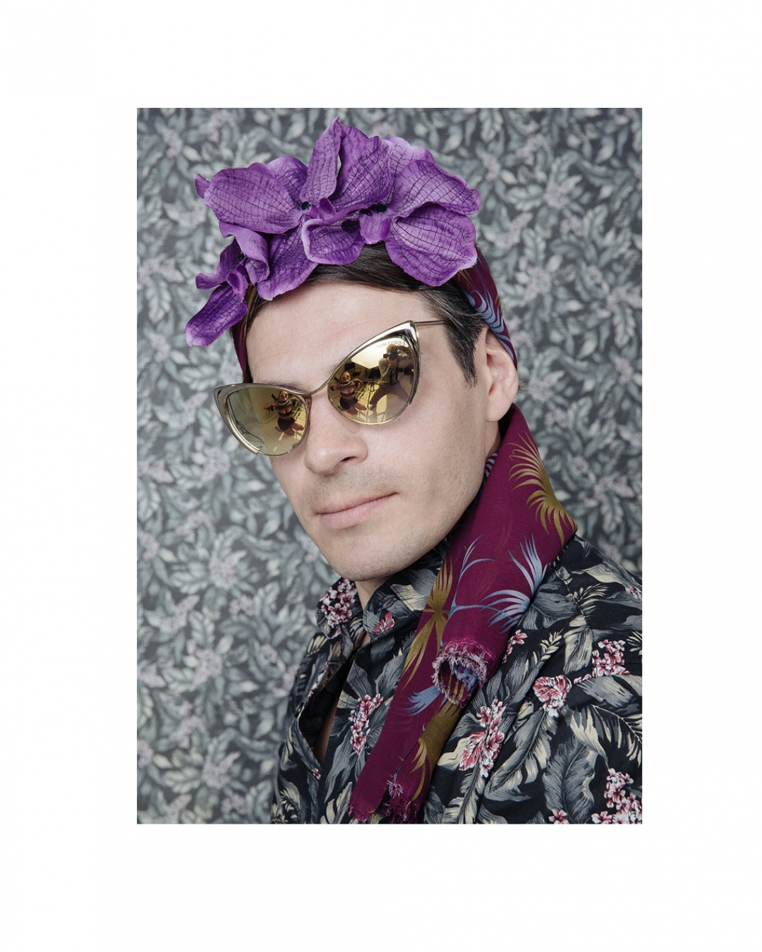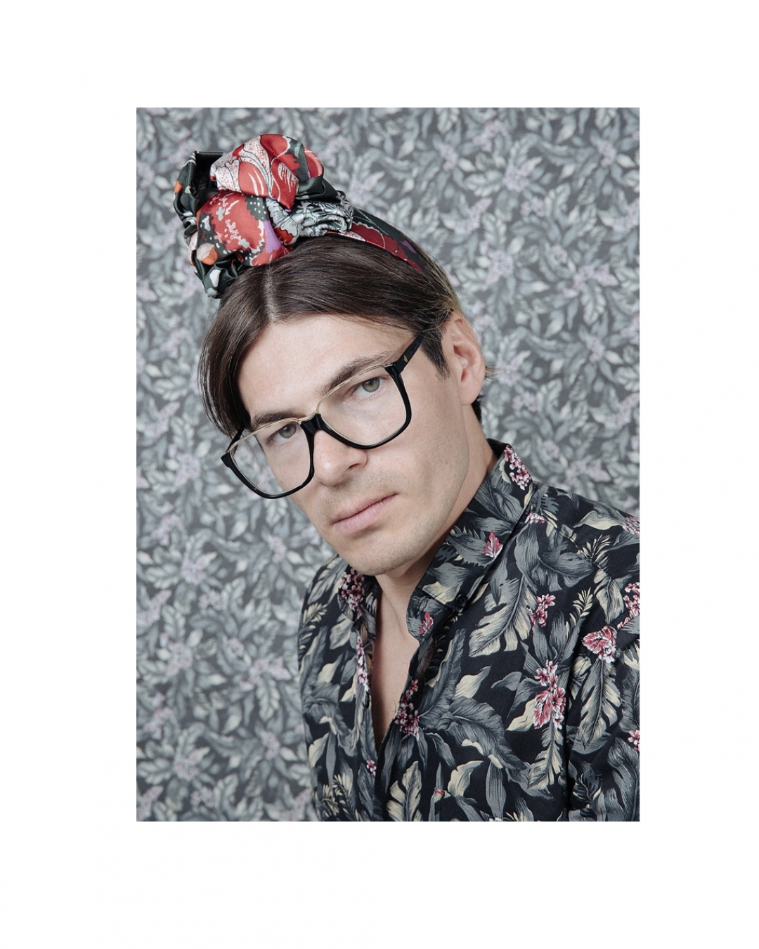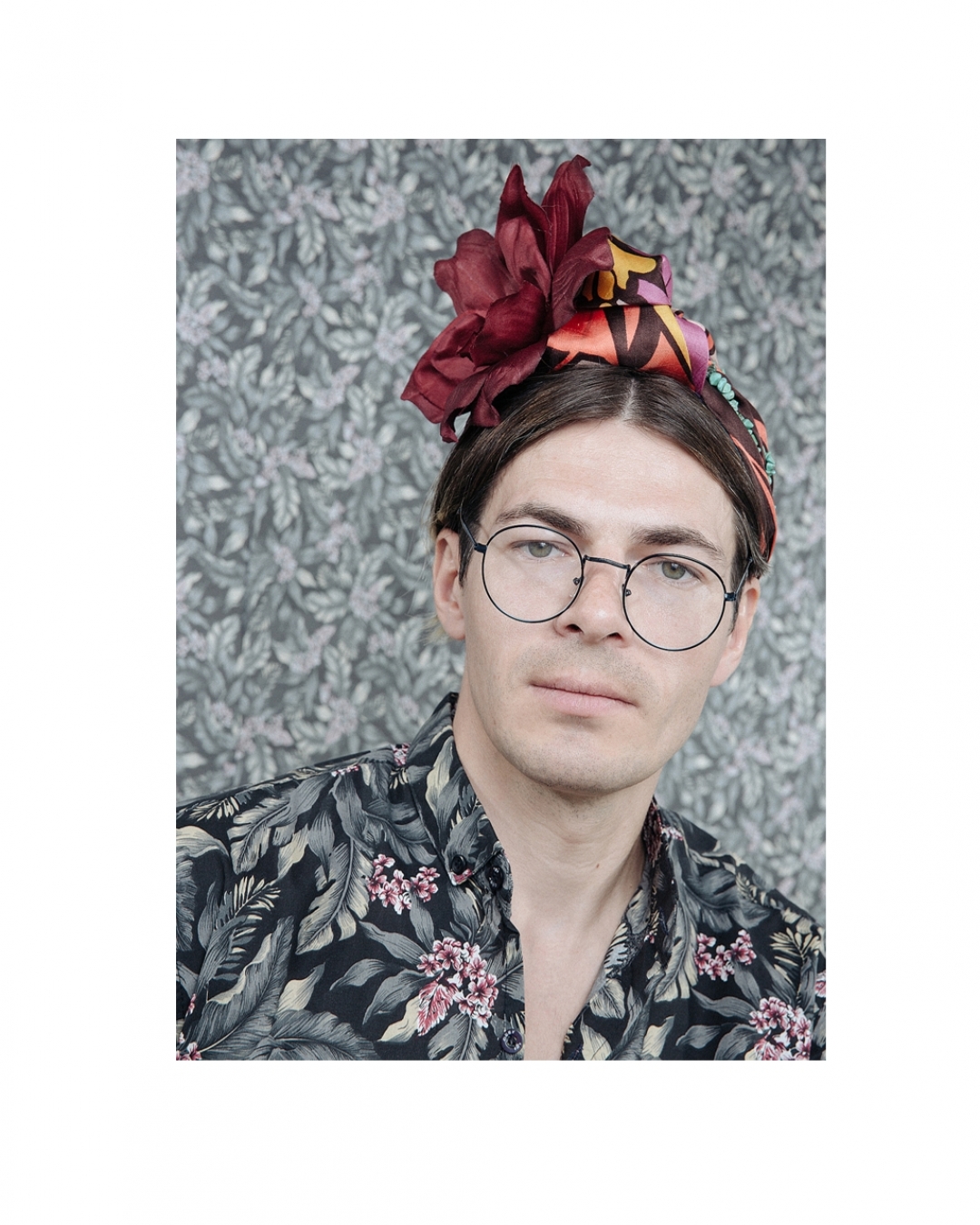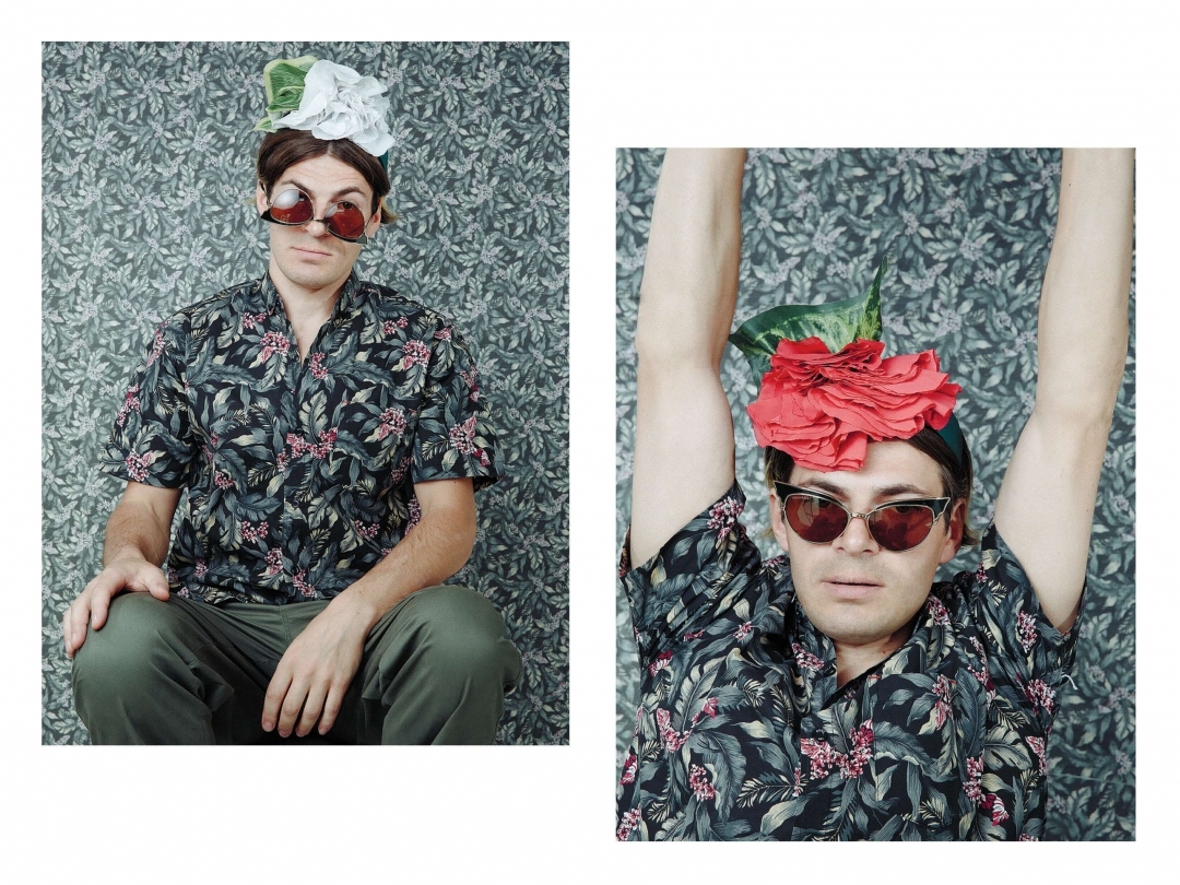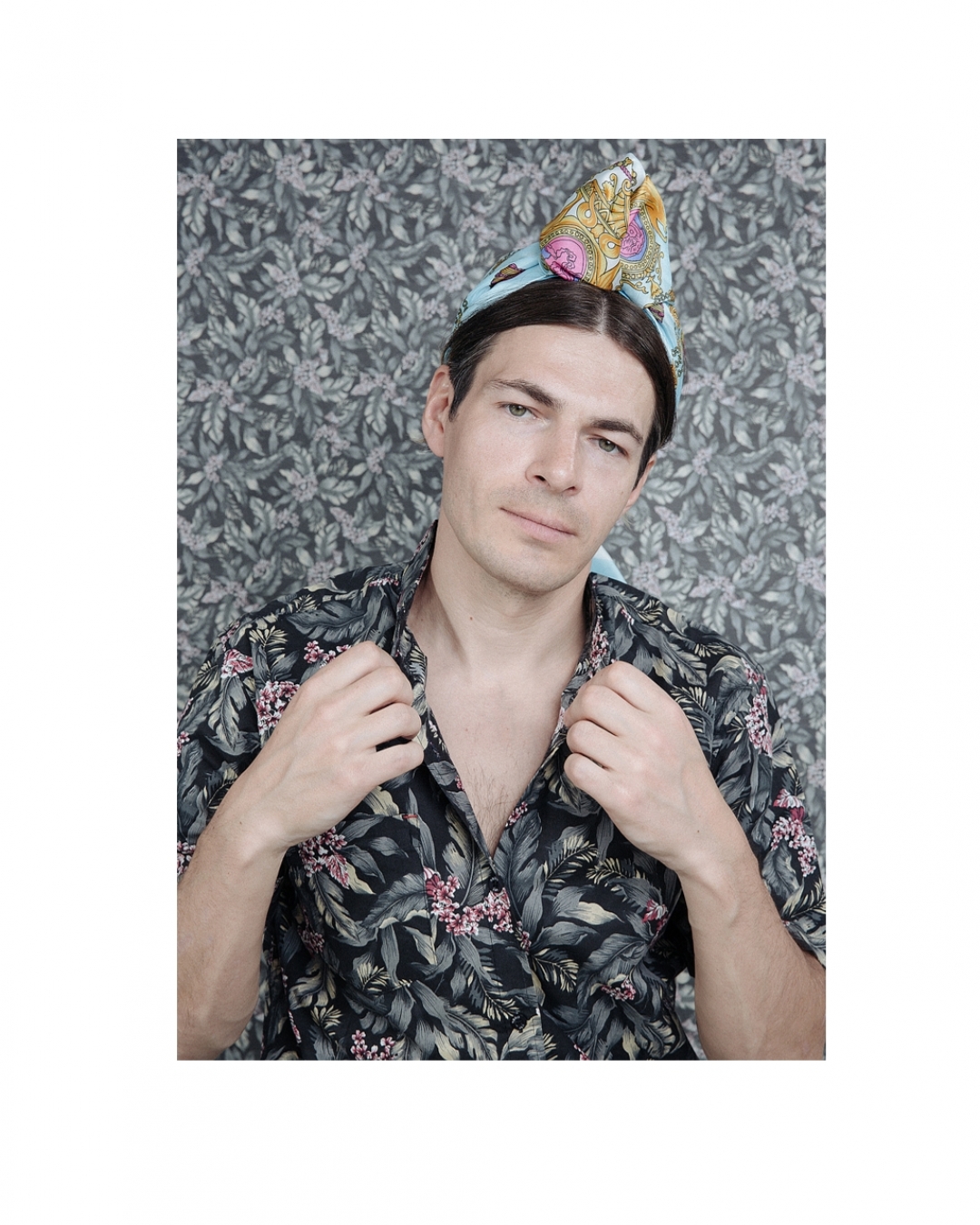 В мудборде ободков из перьев, шелковых платков и искусственных орхидей — путешествие на Бали, где голова всегда должна быть под защитой от палящего солнца. А идею съемки Алина позаимствовала из фильма «Страна Садов», где главный герой получил рубашку из остатков ткани на отделку ванной комнаты. «И вот он стоит в ней на фоне такой же стены с абсолютно невозмутимым видом, — рассказывает дизайнер. — Хотя, если честно, никаких особенных референсов мы не придерживались, а просто веселились и дурачились под миксы Itallika».
