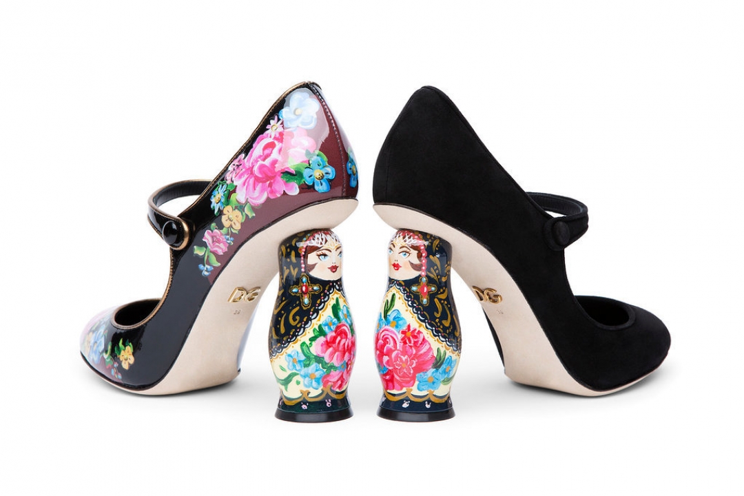 Мы нашли самые патриотичные туфли сезона: Доменико Дольче и Стефано Габбана выпустили лодочки с каблуком-матрешкой. В дополнение к ним идет сумочка в форме сердца, украшенная кисточками и вышитым русским символом на фоне Кремля — и аксессуар, и обувь сделаны вручную и с большой любовью к нашей стране.