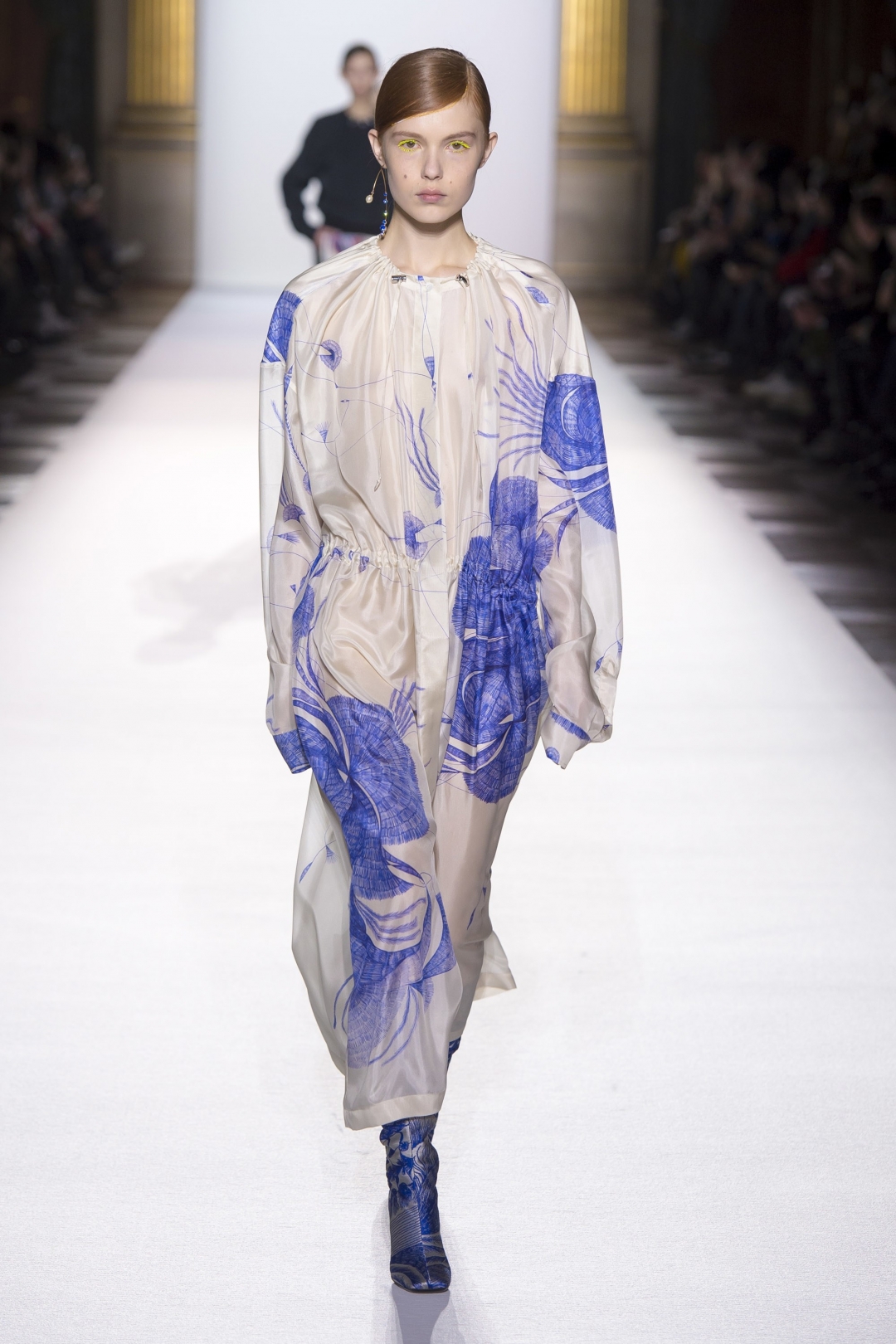 В новом сезоне ДЛТ превратится в настоящий музей — хотя бы потому, что в нем будут не вещи, а арт-объекты. В универмаг поступили платья, рубашки и кимоно из осенне-зимней коллекции Дриса ван Нотена, вдохновленные «Art Brut», «искусством аутсайдеров». Этот термин придумал французский художник Жан Дюбюффе в 1945 году, чтобы описать картины и наброски, сделанные маргиналами, душевнобольными или простыми чудаками. Творили они преимущественно ручкой — и именно такие рисунки повторил на одежде дизайнер.