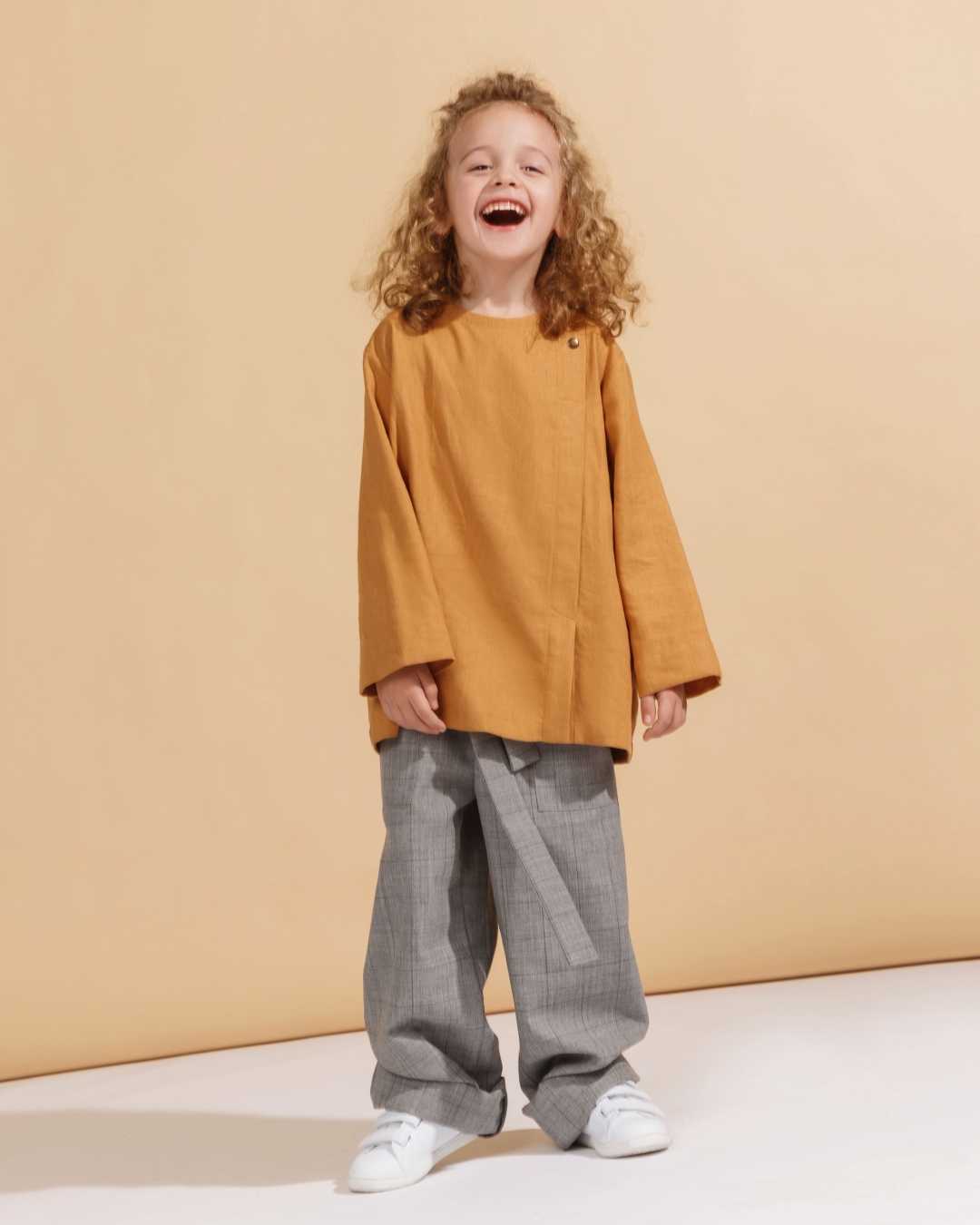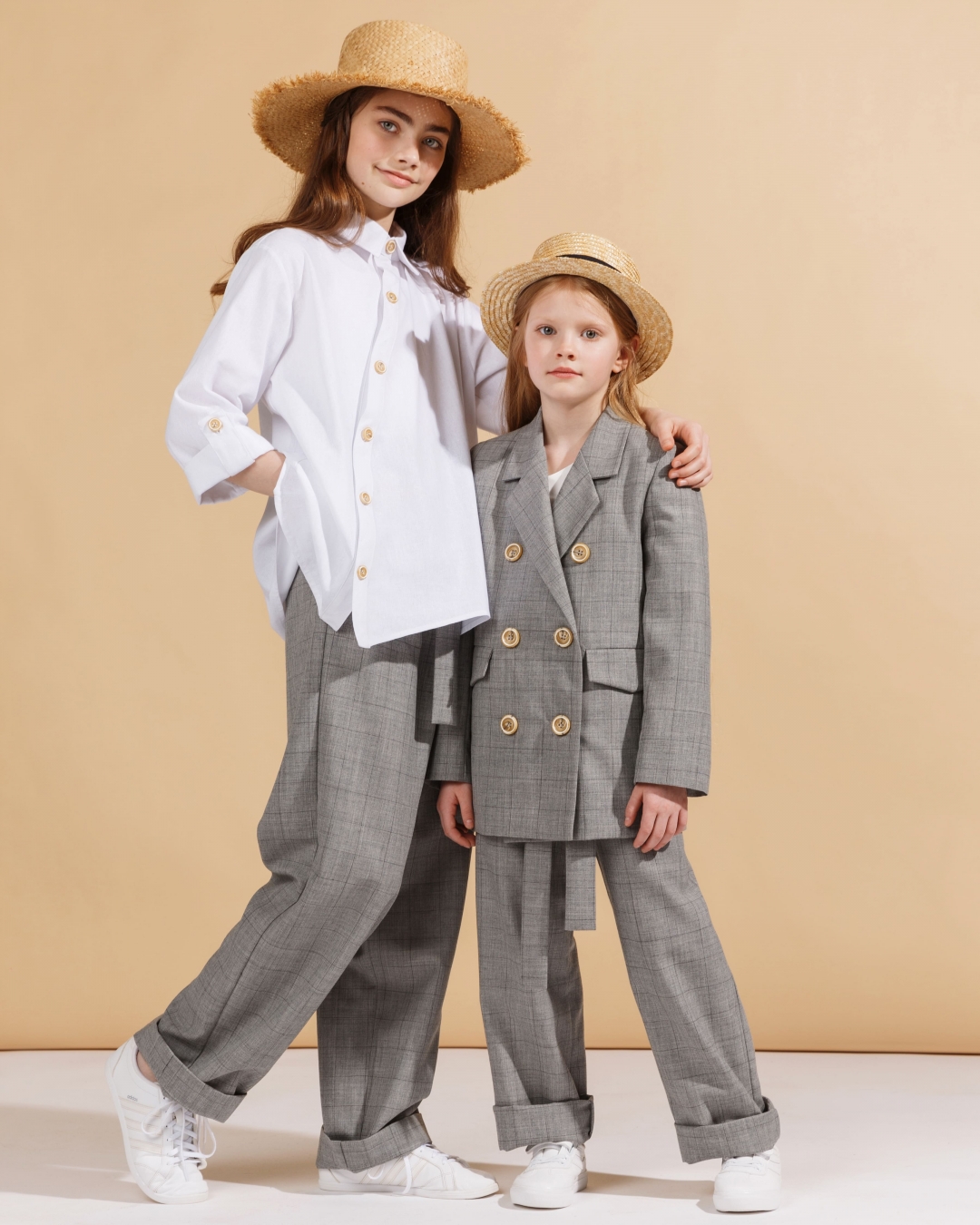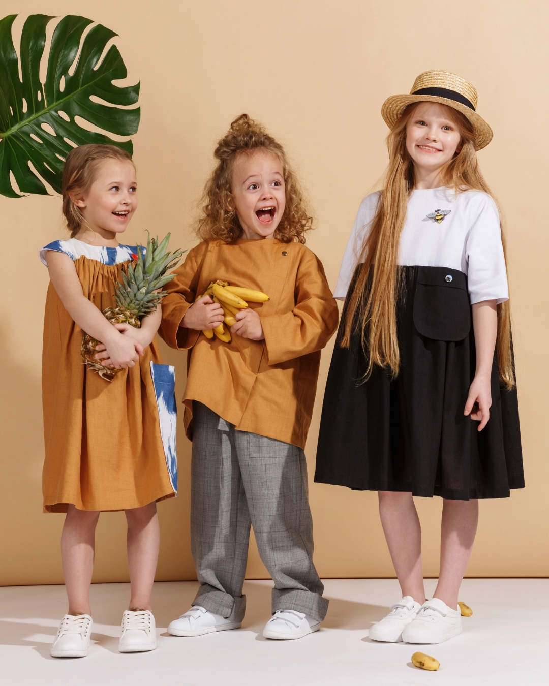 В Петербурге появился бренд детской одежды I'm not a honey с вещами для девочек и мальчиков как у взрослых. Его история началась с шести моделей осенних пальто, а спустя пару месяцев дизайнер Настя Расстегаева стала делать двубортные пиджаки, нескучные костюмы, рубашки асимметричного кроя и оверсайзовые платья с брошами.