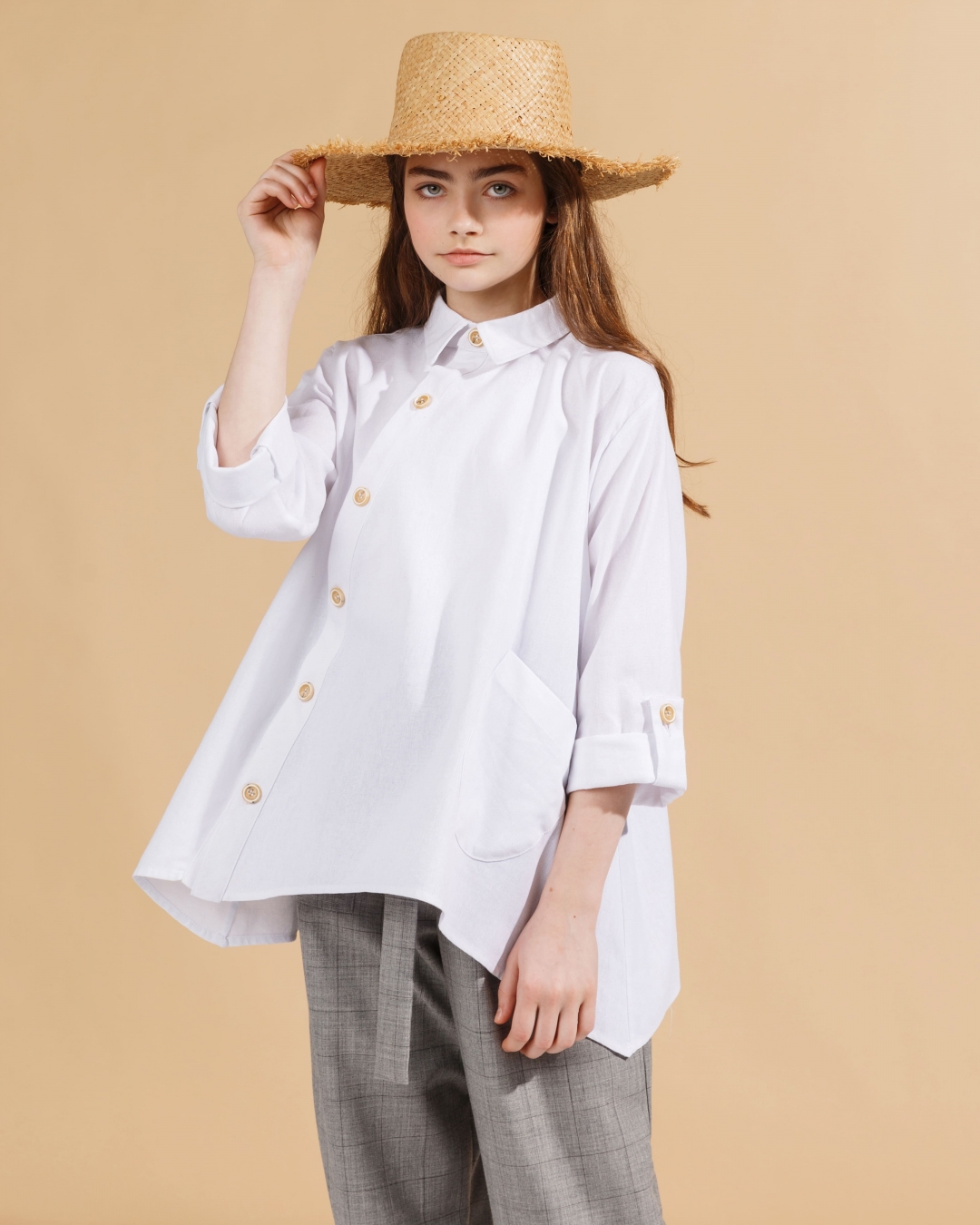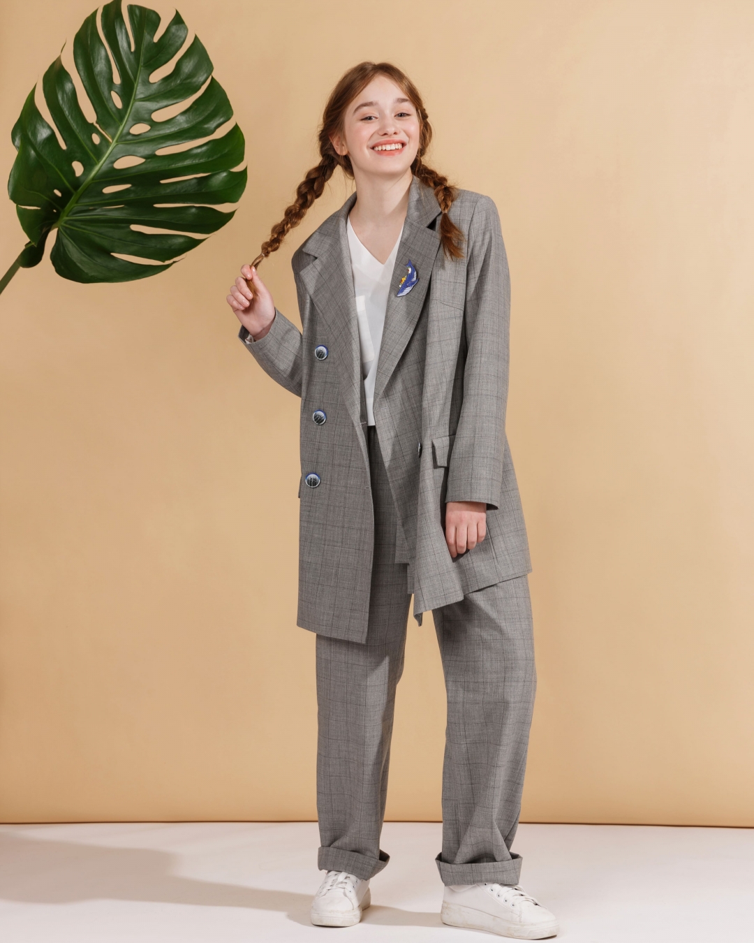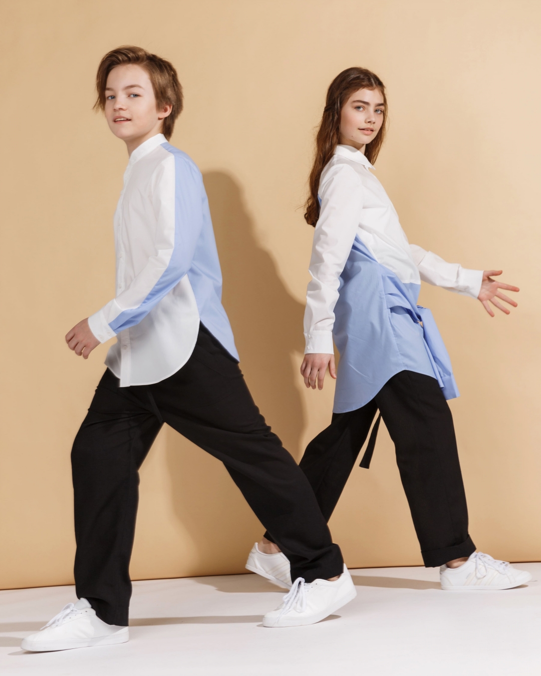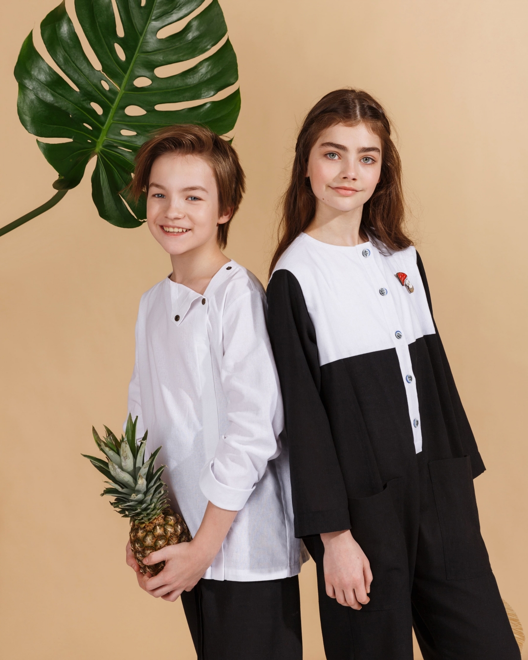 В Петербурге появился бренд детской одежды I'm not a honey с вещами для девочек и мальчиков как у взрослых. Его история началась с шести моделей осенних пальто, а спустя пару месяцев дизайнер Настя Расстегаева стала делать двубортные пиджаки, нескучные костюмы, рубашки асимметричного кроя и оверсайзовые платья с брошами.