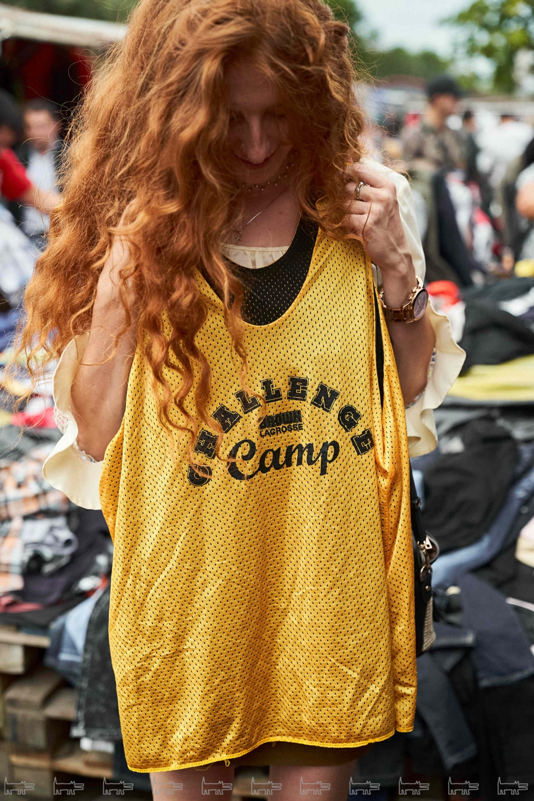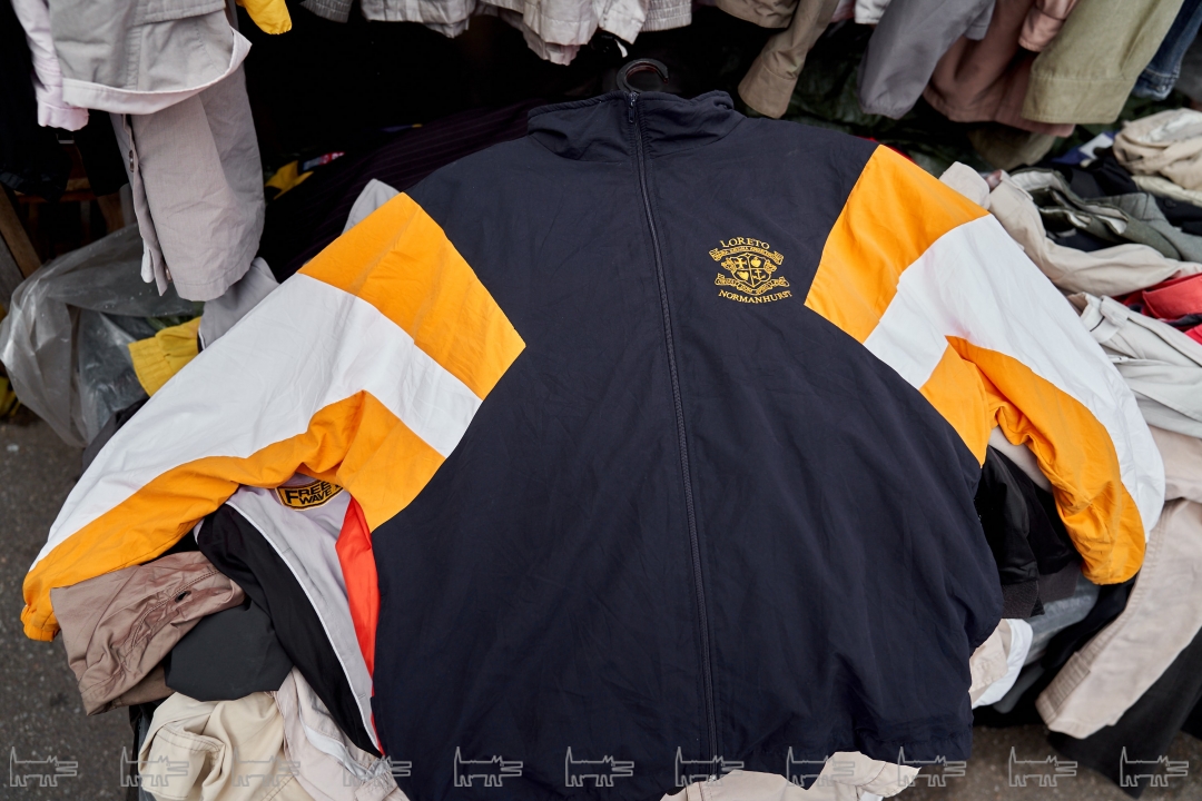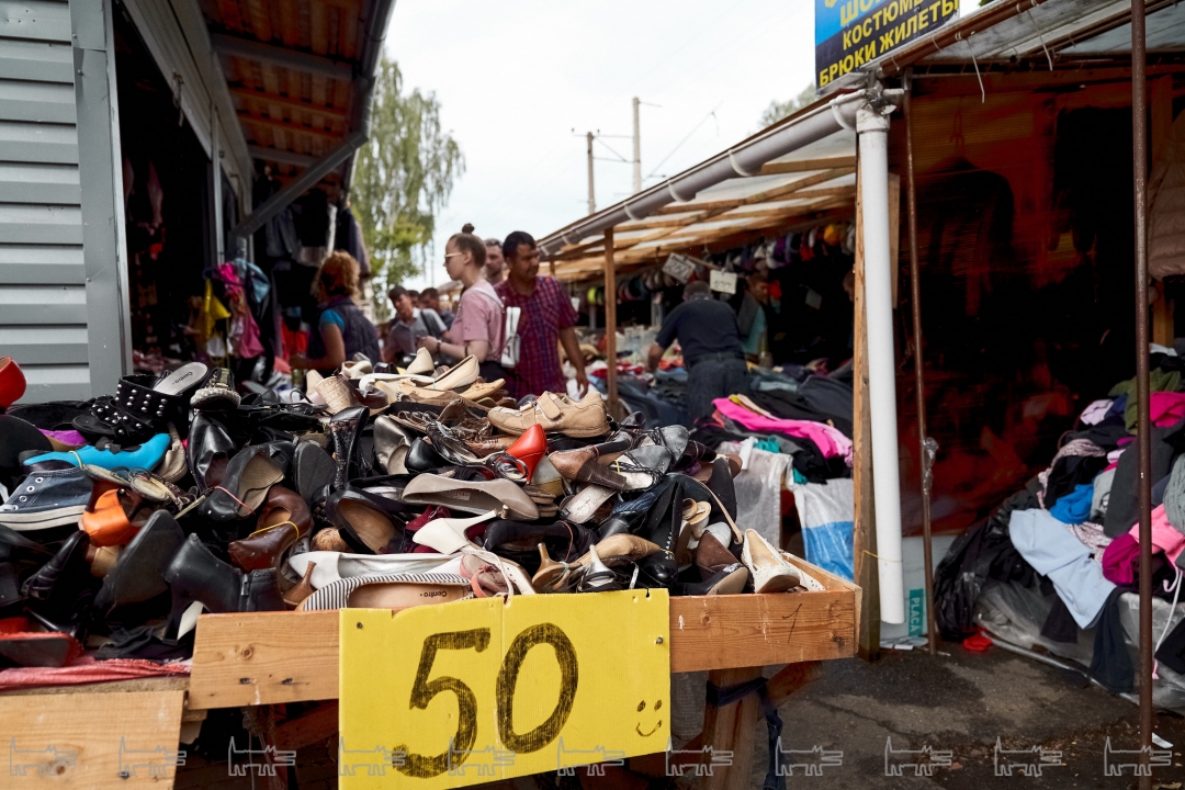 Идеологически «Уделка» делится на две части: в одной — неумелые копипасты кроссовок Balenciaga Triple S и толстовок Off-White с Моной Лизой, во второй — действительно классный винтаж, который продавцы везут со всего мира. Проходя мимо первых рядов (где мы чувствовали себя по меньшей мере блогерами @diet_prada), пару раз чуть не получили ботинками по голове: «Снимать здесь запрещено! Убирайте камеры!» — кричали нам не только бабушки, но и взрослые (рослые) мужчины. На попытку представиться и объяснить, для каких целей мы пришли на рынок, они продолжали отмахиваться: «Реклама нам не нужна, и без нее все прекрасно продается!»