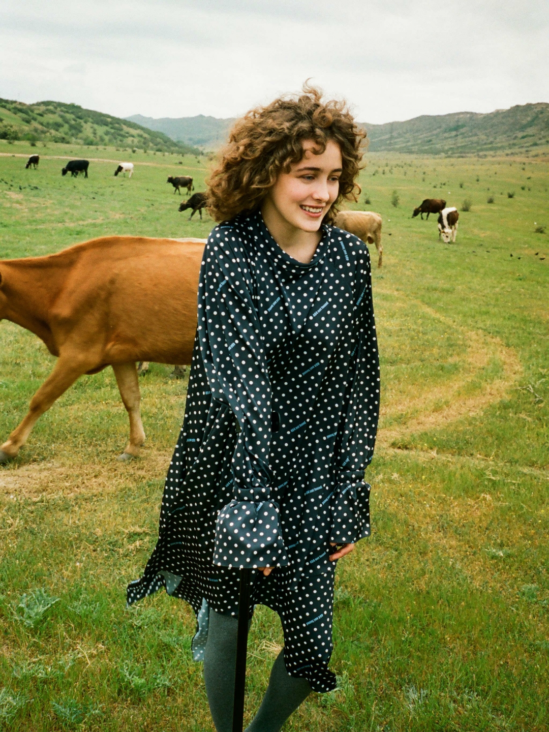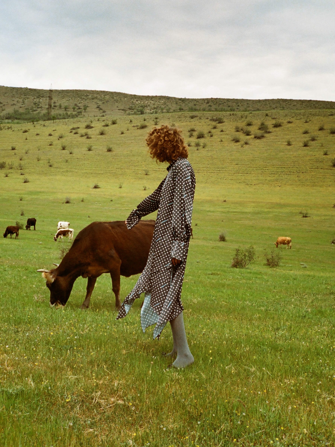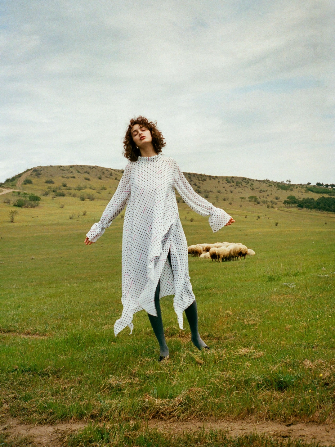 Финалист нашего конкурса «Новые имена в моде-2018» бренд 404 NOT FOUND, над которым работают дизайнер Алена Феликсова и фэшн-фотограф Антон Рудзат, вернулся из Грузии с кампейном осенне-зимней коллекции. В ее мудборде — фильм «Москва слезам не верит» и образы героинь Кати Тихомировой и ее дочери (кумира тинейджеров!) Саши. По мнению Алены, они — воплощение стиля настоящей русской женщины — с платьями в горошек, разноцветными колготками, драпированными юбками и power-dressing костюмами. Большинство этих вещей мы видели на подиуме Mercedes-Benz Fashion Day в Петербурге, а некоторые дополнили коллекцию впервые.