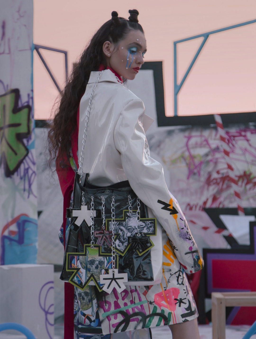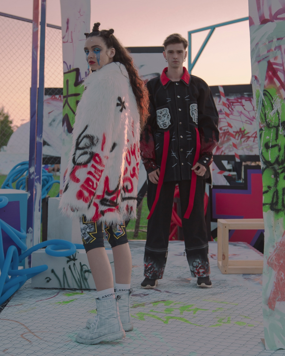 Граффити — главный модный тренд будущего — доказывают финалистка «Новых имен в моде» Ольга Чернощекова и авторы глобальных художественных проектов для VK Fest, Off by Roots United и «Видфеста», студия Artletika. Ребята выпустили капсульную коллекцию с плащами, велосипедками, костюмами и шопперами, на которых Artem Cowy и Wert 159 — рекордсмены Книги Гиннесса за самый большой рисунок, светящийся в темноте, — оставили свои иллюстрации, логотипы и тэг «а что ты сделал для моды в свои годы?».