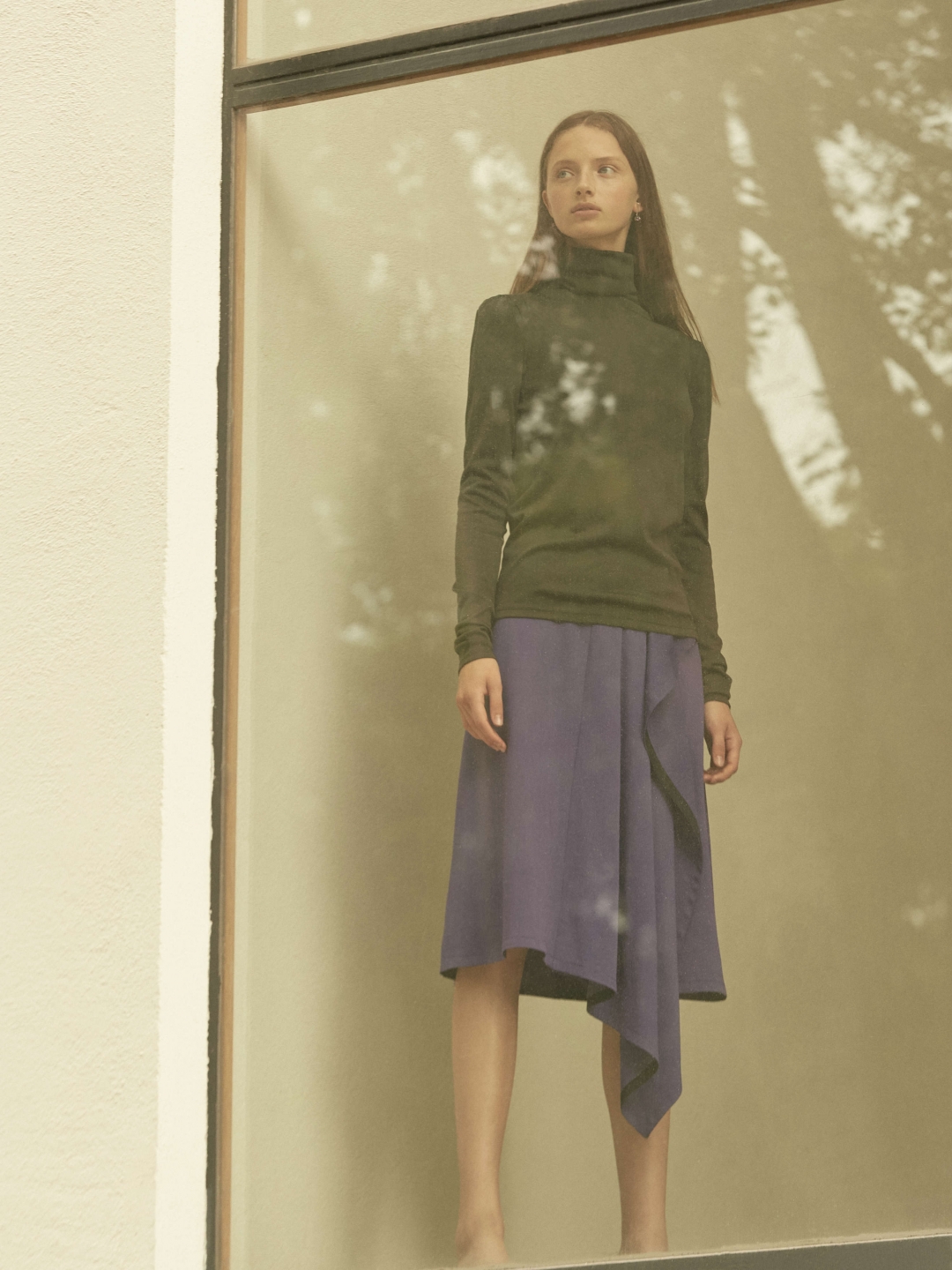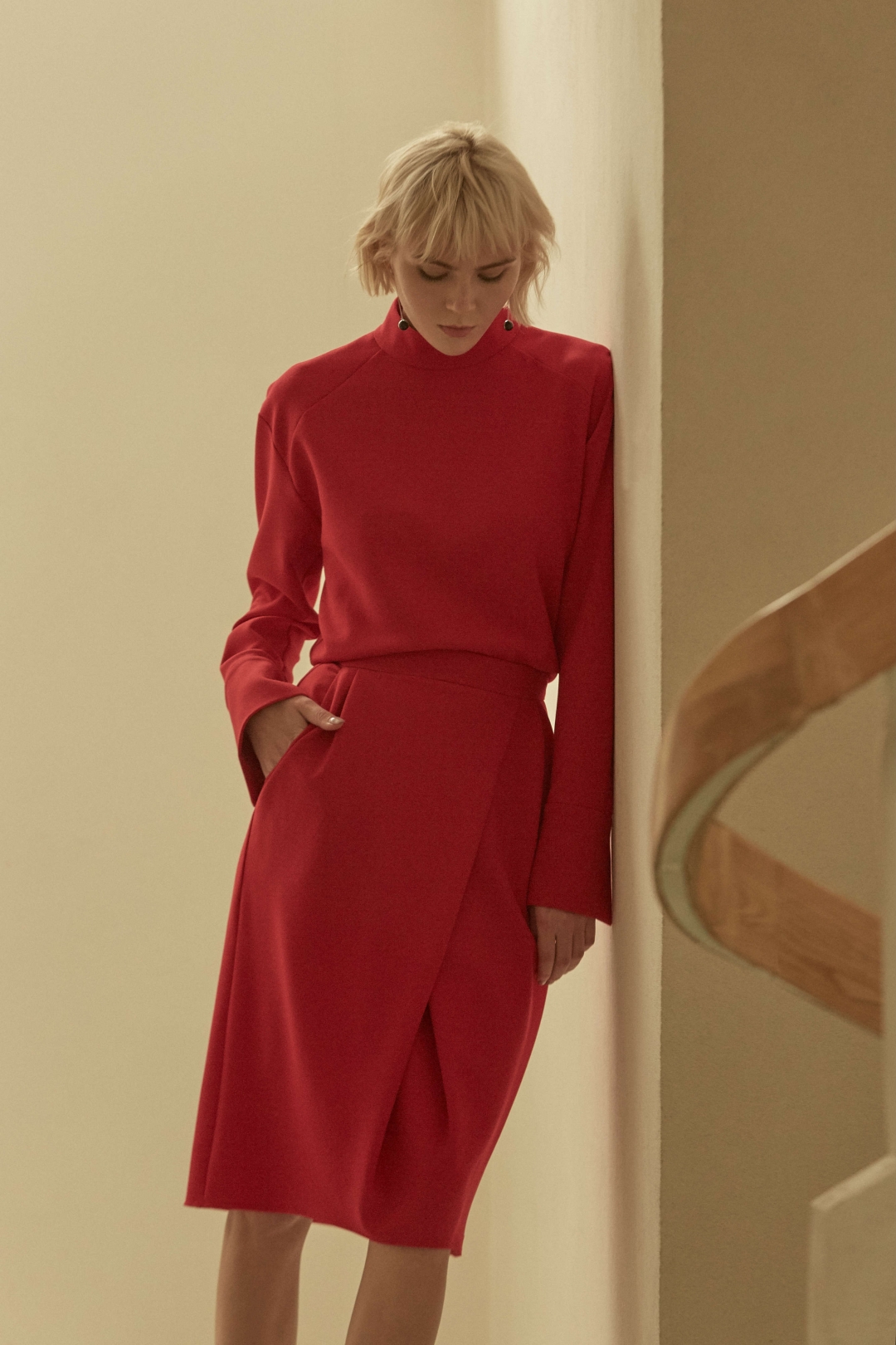 В этой коллекции BELKA впервые появилась верхняя одежда — классическое пальто-кокон, выполненное из тканей разной фактуры и плотности: легкой синей шерсти, плотной черной шерсти и мягкой шерсти в крупную клетку, будто позаимствованной из мужского гардероба. Остальное у бренда не изменилось — его одежда не только красиво носится, но и легко стирается, гладится и сочетается со всем остальным гардеробом.