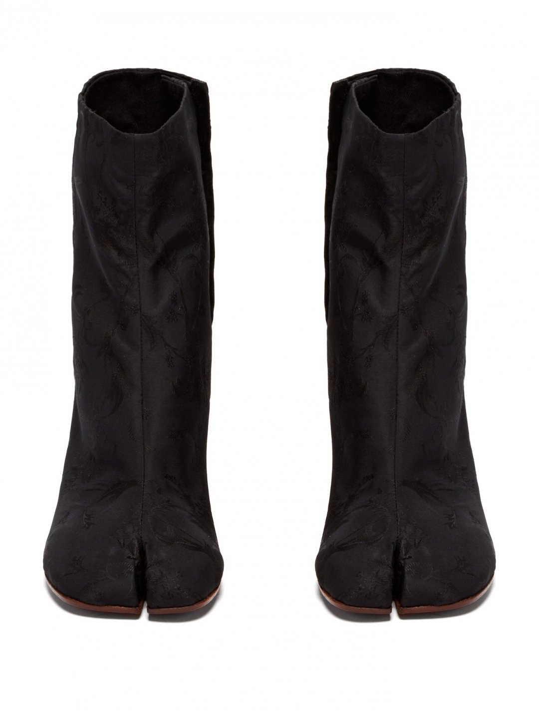 Помимо «заряженного на успех» каблука, новые ботильоны Vetements еще и отсылают к работе ментора Демны — Мартина Маржелы: их дизайн повторяет мыс культовых туфель Tabi. Купить одну из самых обсуждаемых вещей сезона (и совершить самый выгодный обмен валют!) можно в ДЛТ за 124 000 рублей.