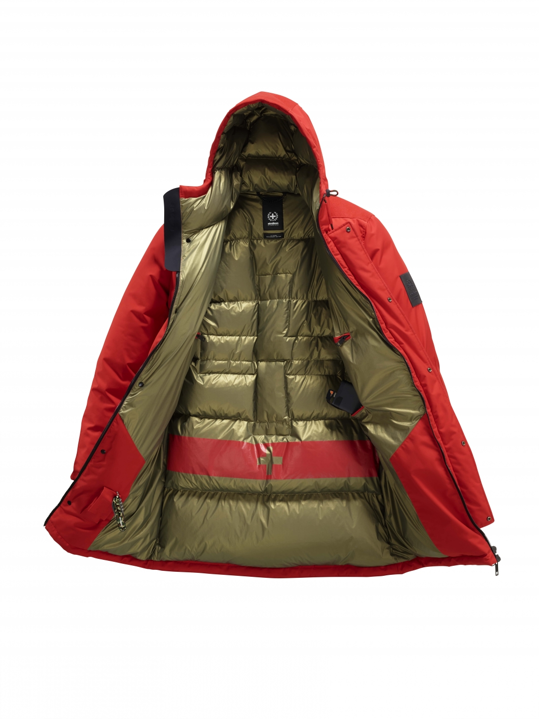 Вокруг функционального релиза выстроена целая линейка Strellson Swiss Cross с парками по образцам 2003 года. Их подкладка были сделана из шерстяного (колючего!) армейского одеяла, а в комплекте шел офицерский нож компании Victorinox. Спустя 15 лет куртки по-прежнему сделаны из одеяла, но уже более мягкого, а также осовременены по последнему слову techwear. Купить их можно в магазине Strellson в ТК «Невский центр»: куртка с подогревом стоит 77 790 рублей.