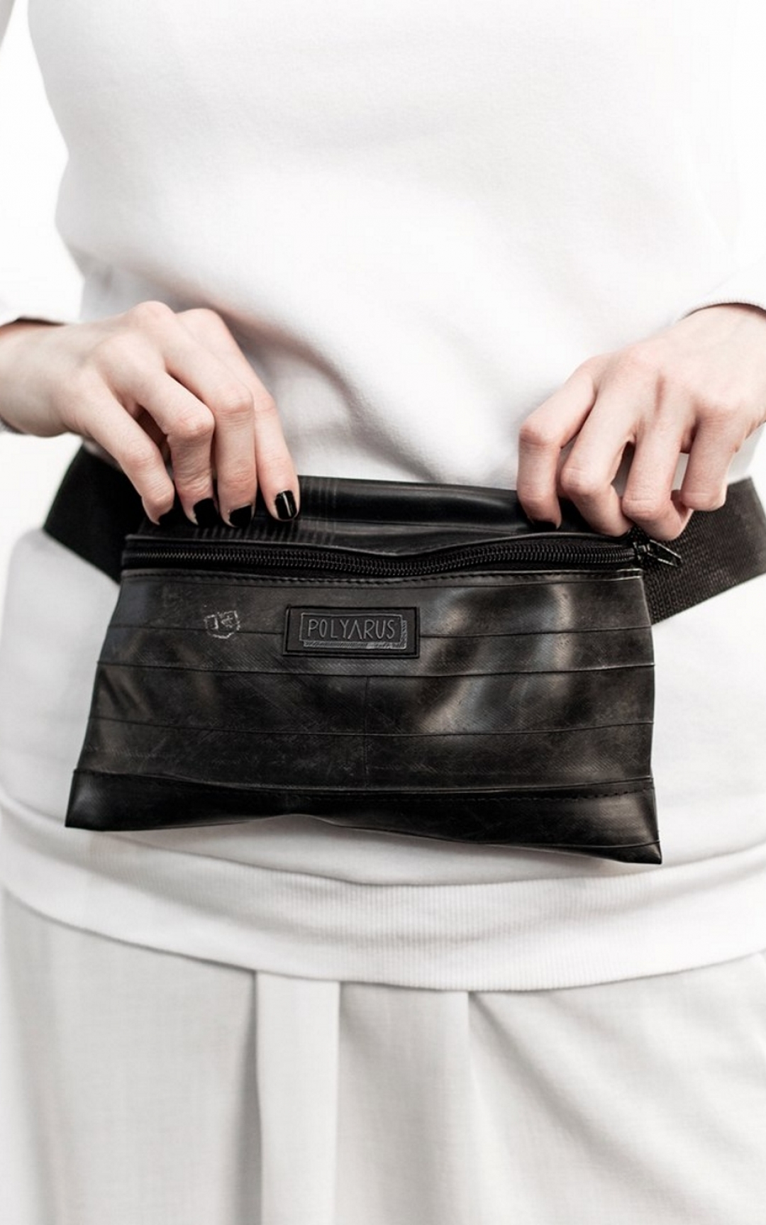 Саша Полярус из Петербурга утилизирует мусор из музеев и шиномонтажек, превращая его в поясные сумки, авангардные рюкзаки и яркие кросс-боди. В ход идут автомобильные камеры, ремни безопасности, баннерные сетки и строительные цепи, к работе над которыми часто подключаются современные художники Стас Дэнжев, Катя Нуклеус и Павел Бумажный.