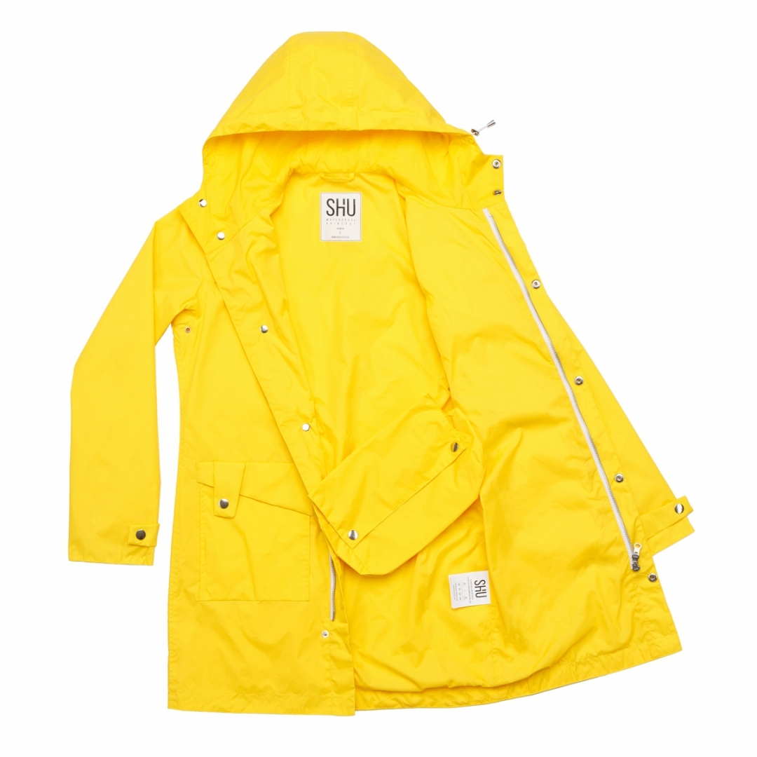 Плащи и парки из новой коллекции бренда верхней одежды SH’U отличают яркие акцентные цвета. В целом гамма верхней одежды строится на использовании классических черного, темно-синего и белого цветов, а также нюдовых оттенков – от светло-голубого и бежевого до серого и мятного. В этом году дизайнеры усовершенствовали и свой бестселлер дождевик, добавив к длине плаща еще 8 см.