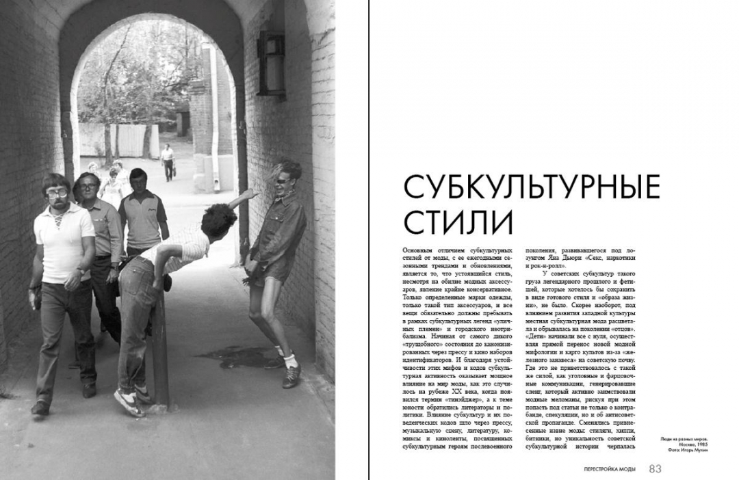 Литературы о советской моде мало: это прекрасная книга воспоминаний Ирэн Андреевой, фотоальбом Аллы Щипакиной и "Мода по плану. История моды и моделирования одежды в СССР". Полноценные качественные и доступные исследования тоже отсутствуют: даже самый толковый историк моды Александр Васильев интересуется только "Серебряным веком", русским зарубежьем и героинями ранга Надежды Ламановой. Далее по временному контексту все немногочисленные издания скромно сворачиваются в тему советского быта в целом, ведь с 60-х теория и концепция "социалистического костюма" терпят фиаско и превращаются в откровенно западный эрзац. Нам впервые пришлось быстро пролистать эту историю советской "антимоды", которая противопоставляла себя буржуазной, и соединить ее перестроечной»