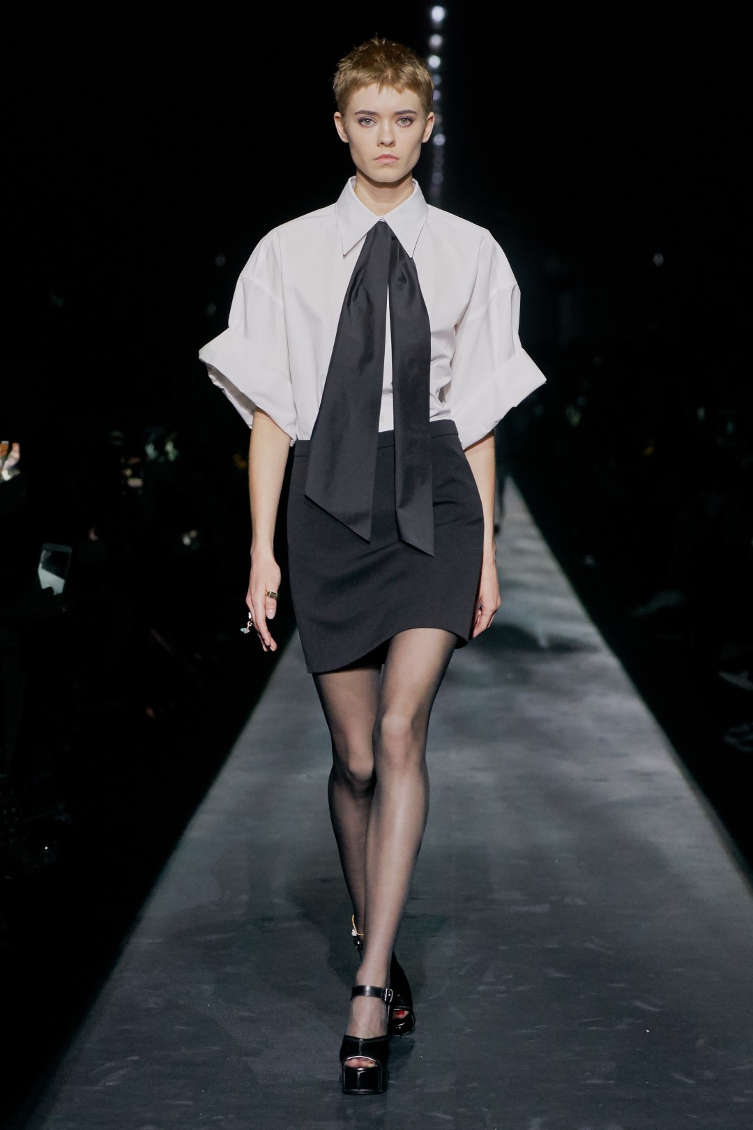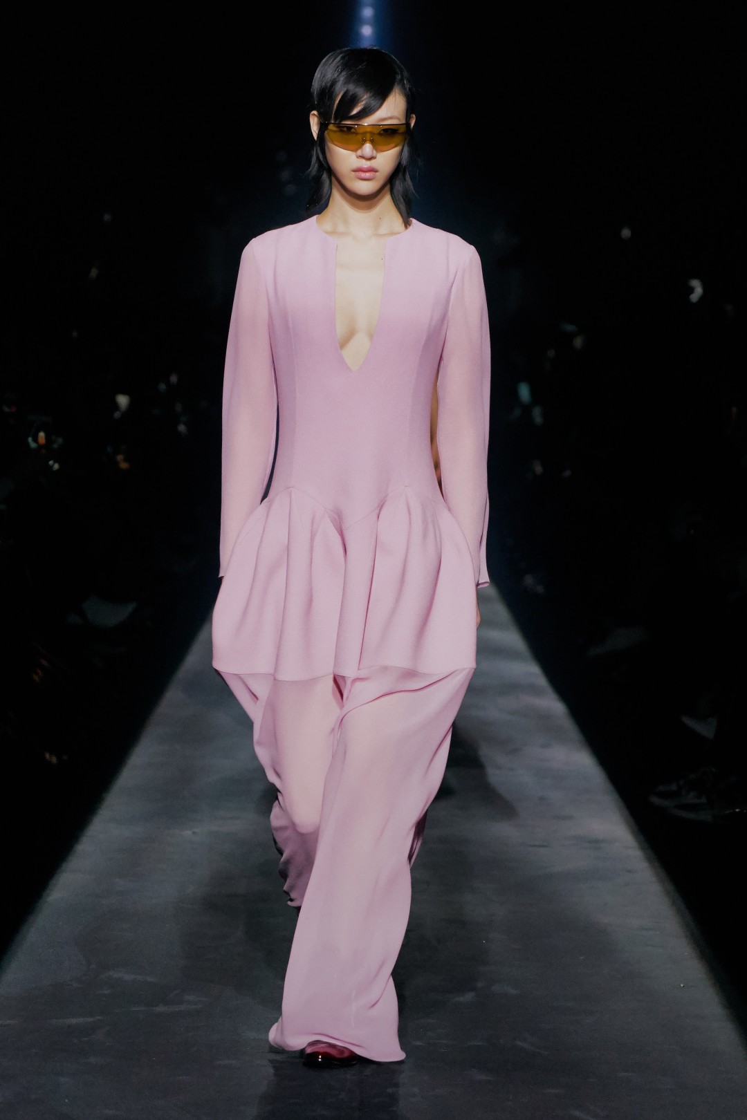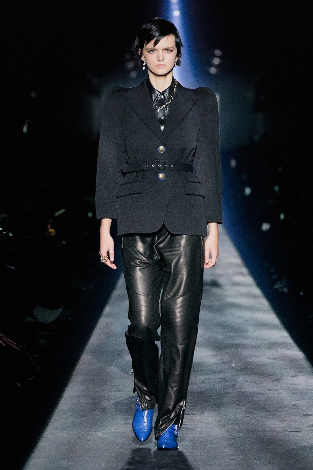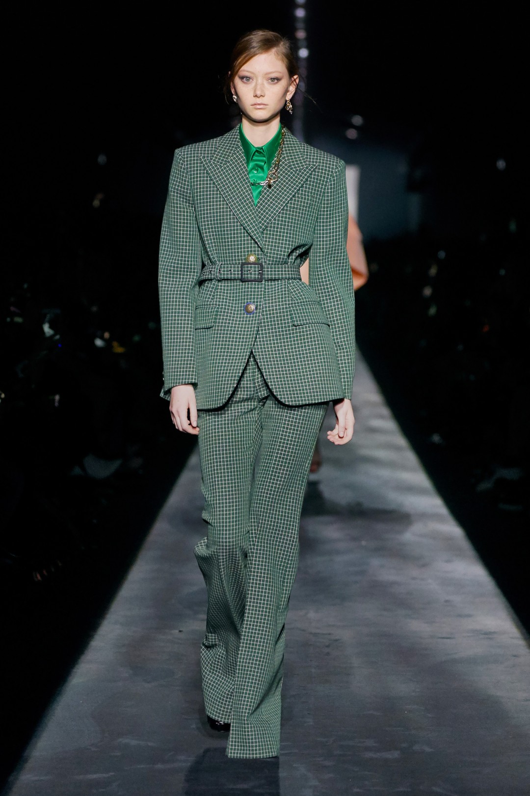 Помимо цветочных и трикотажных нарядов, в коллекцию Givenchy вошли многочисленные брючные костюмы. Часть из них была с нарочито увеличенной линией плеча (в лучших традициях послевоенной эпохи), а другая — с зауженным и приталенным силуэтом (как любили носить в гранжевые 1990-е).