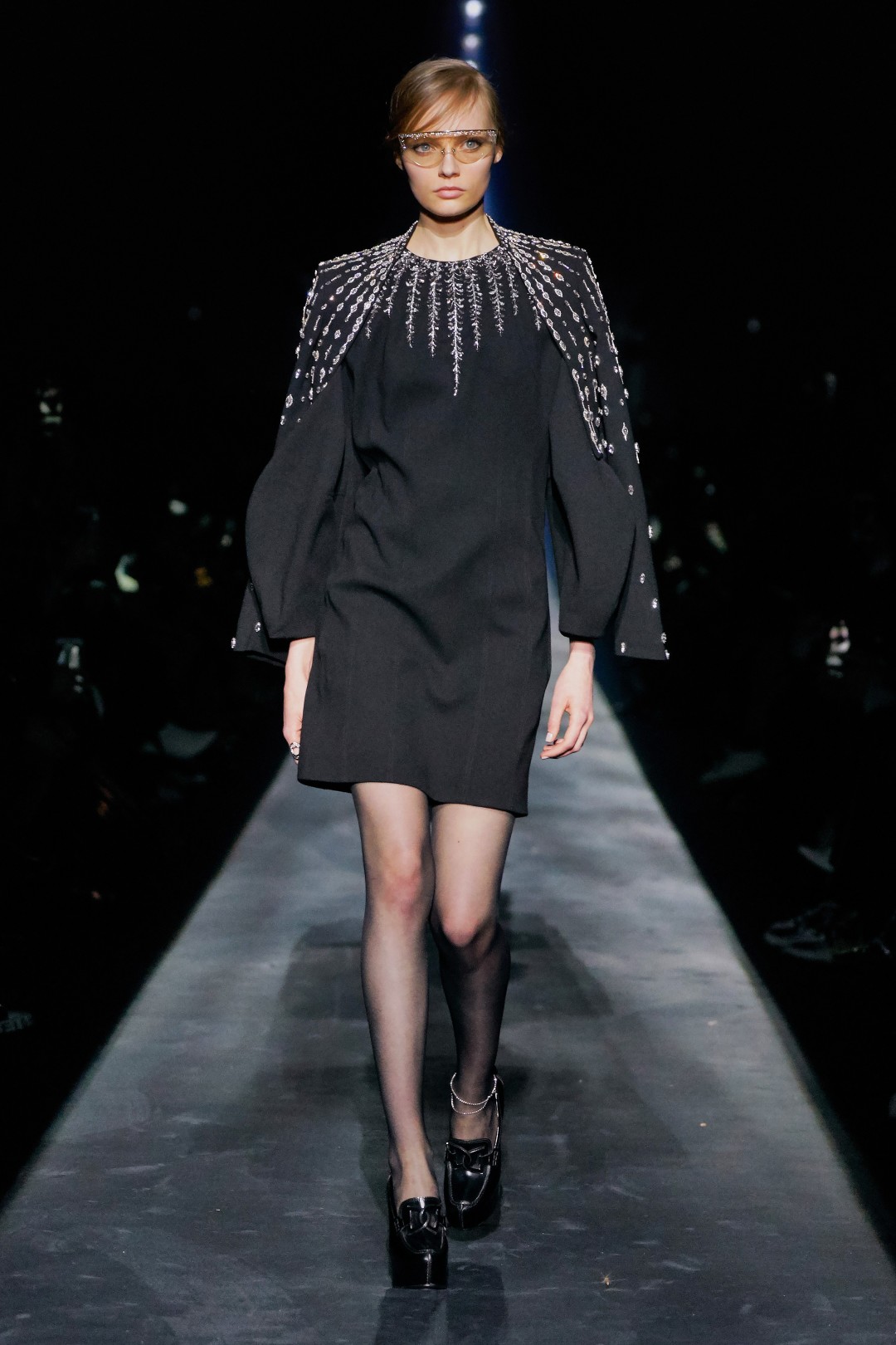 В конце показа на подиуме появились модели в кутюрных платьях — с блестящим кейпом, открытыми плечами и гипертрофированными рукавами. Они набирают все большую популярность не только у членов королевской семьи, но и у тружениц голливудского кинематографа: от Рейчел Вайс, которая появилась в Givenchy на «Оскаре», до Розамунд Пайк, которая вышла в наряде от Клэр на «Золотом глобусе». Сезон красных дорожек только начался!