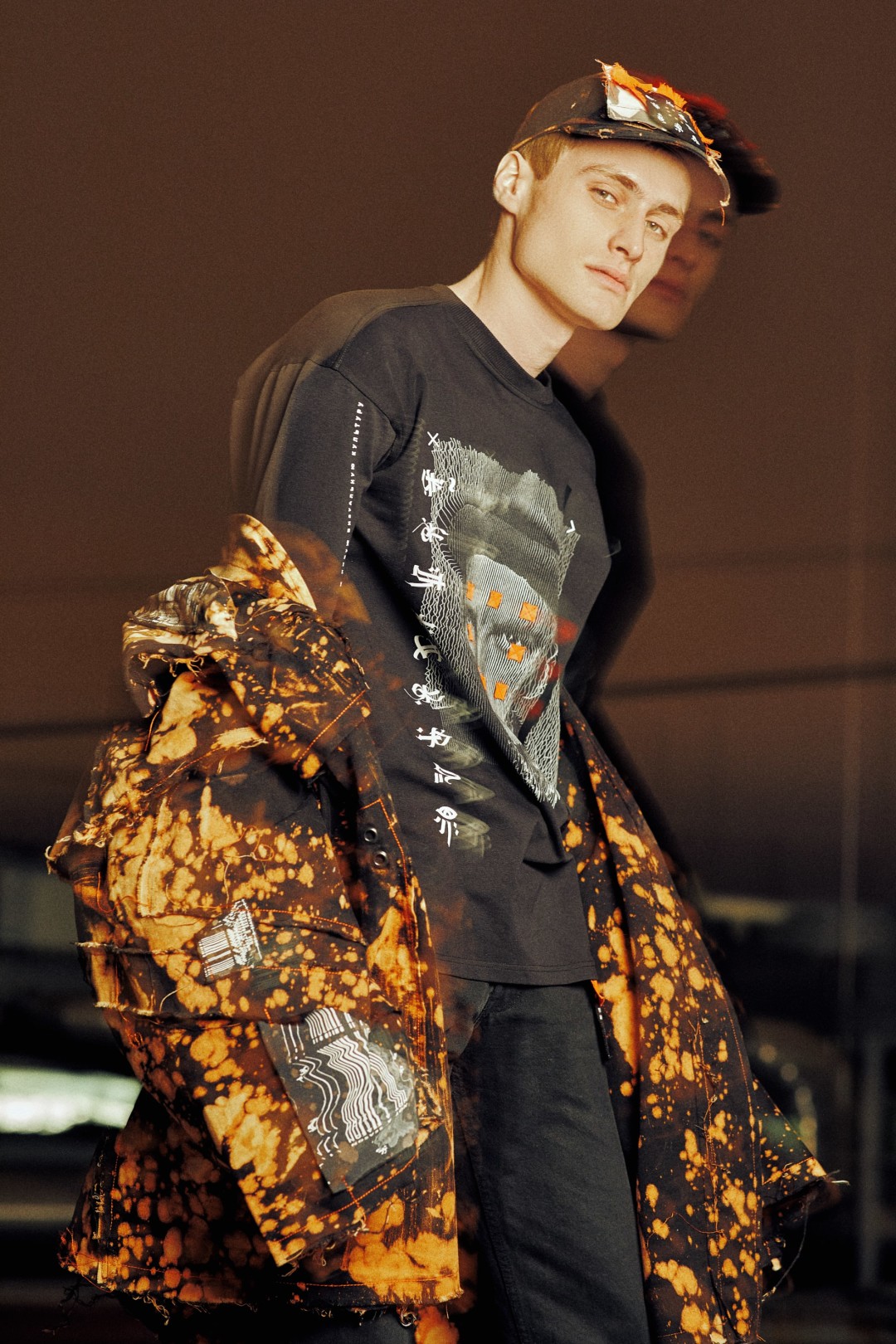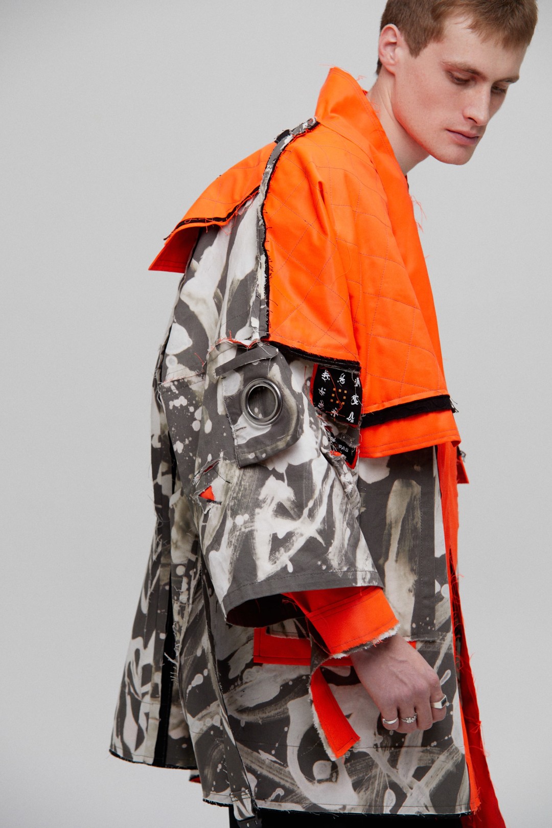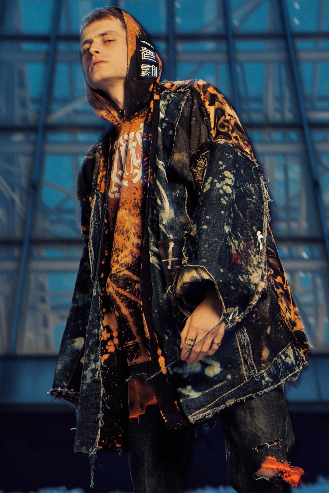 «Я считаю важным показать зрителю не просто абстрактные позиции одежды, но связь места и времени, руки художника, краски, полотна и объекта, в который все трансформируется и сливается. Каждая вещь— связь искусства и моды, экспериментов и традиций, сама по себе является манифестом: вручную расписанная ткань, вырезанные лоскуты из рабочей робы, вытравленный деним, шелкография — все вместе собирается в уникальную композицию, сшивается, закрепляется люверсом и объединяется в цельный образ и высказывание»