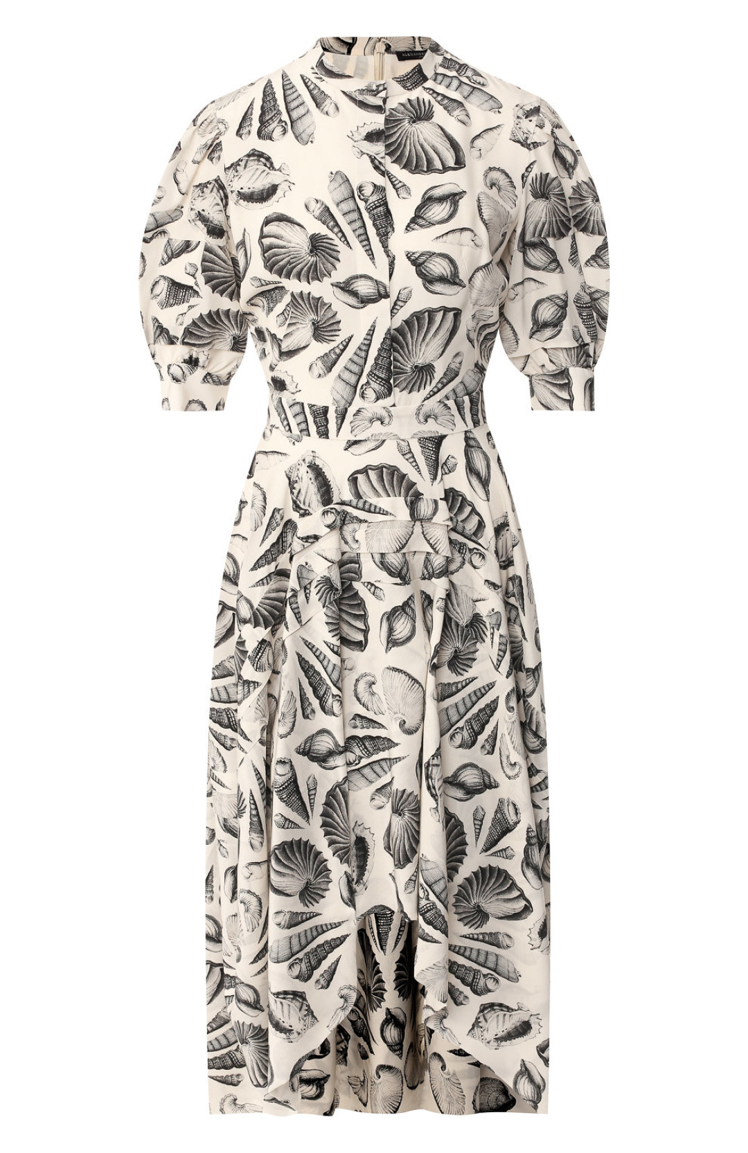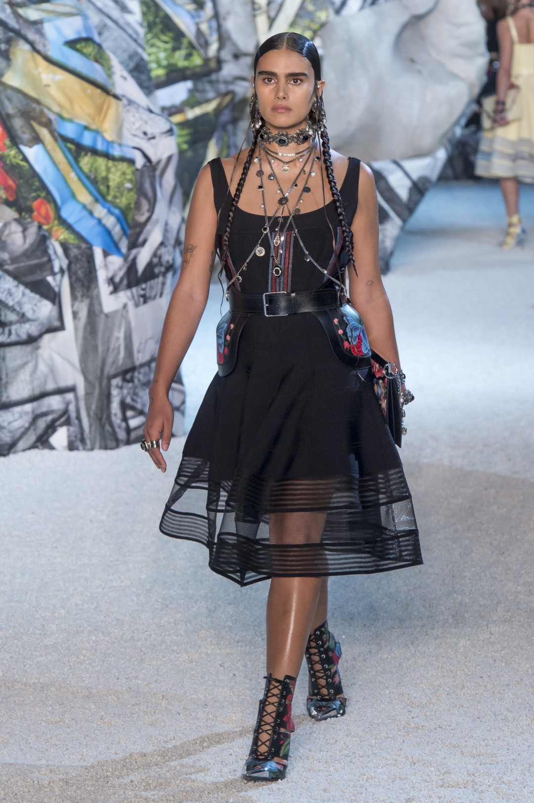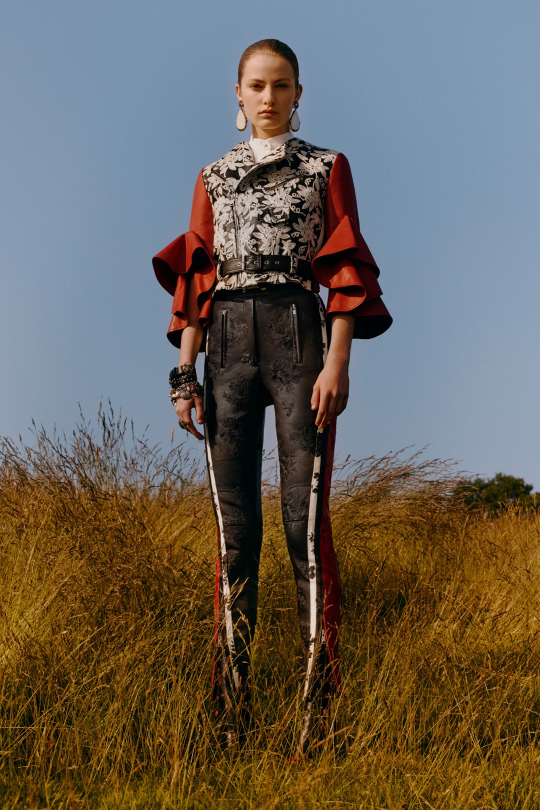 В Петербург приехали пре-коллекция и часть подиумной коллекции Alexander McQueen. Первую креативный директор Сара Бертон посвятила двум героям британской истории: палеонтологу Мэри Эннинг, сделавшей ряд открытий в области морской фауны юрского периода (отсюда — платье с принтами-ракушками) и писателю Томасу Харди, написавшему резонансный роман викторианской эпохи «Тэсс из рода д’Эрбервиллей» (отсюда — вещи с объемными плечами и кружевной отделкой). Викторианская тема продолжилась и во второй, весенне-летней коллекции марки: на этот раз рюши и вышивки перебрались на кожаные корсеты, спортивные брюки, киберпанковские ботинки и архитектурные сумки на цепочках.