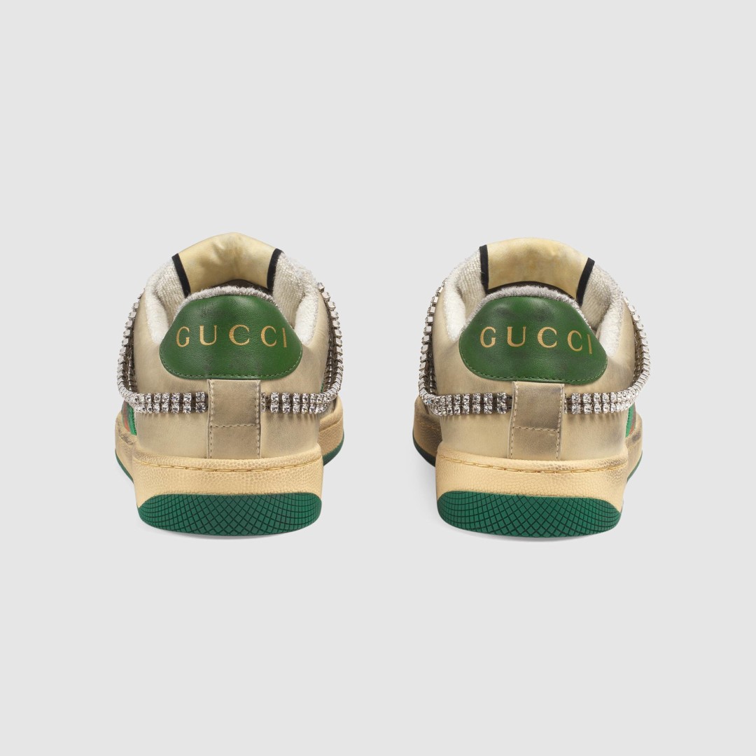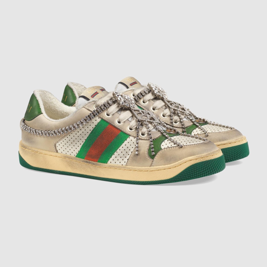 Мы нашли идеальную пару для долгих прогулок на майские праздники, которым не страшна беспощадная петербургская пыль! Креативный директор Gucci Алессандро Микеле изначально сделал кроссовки Screener грязными — с небольшими потертостями на подошве, пятке и носу, но не мог не украсить бриллиантовой диадемой — сказывается богатое ювелирное прошлое дизайнера.