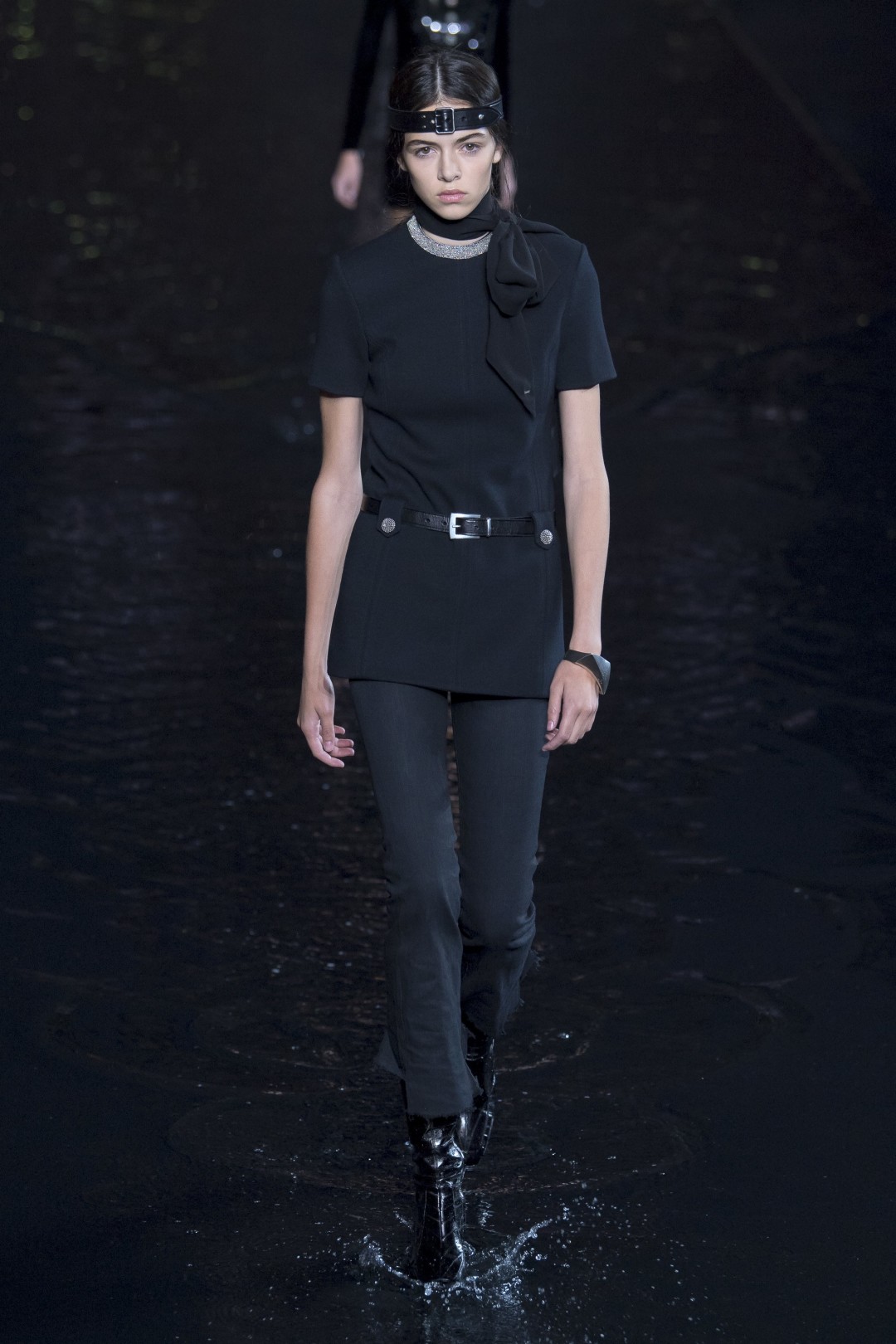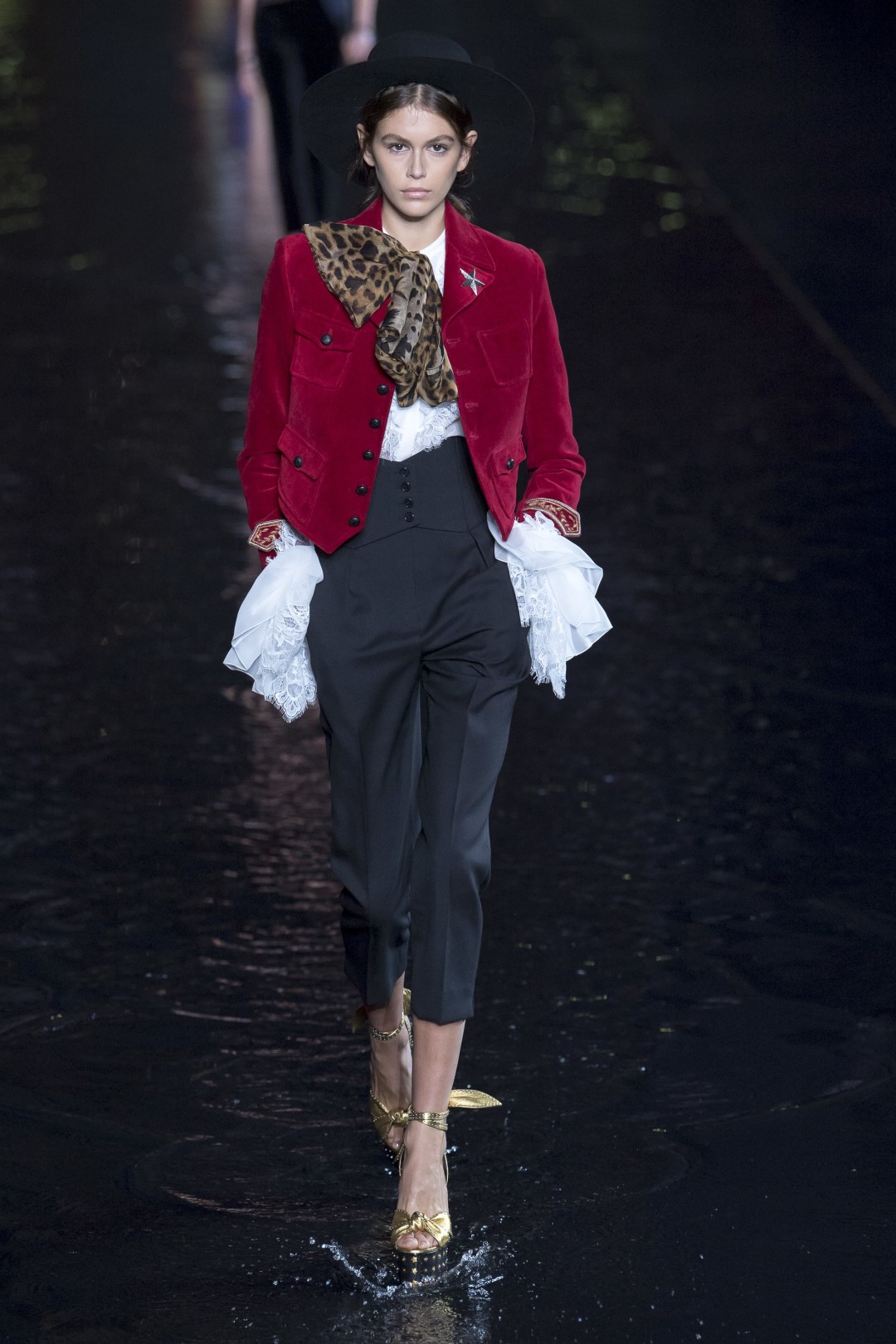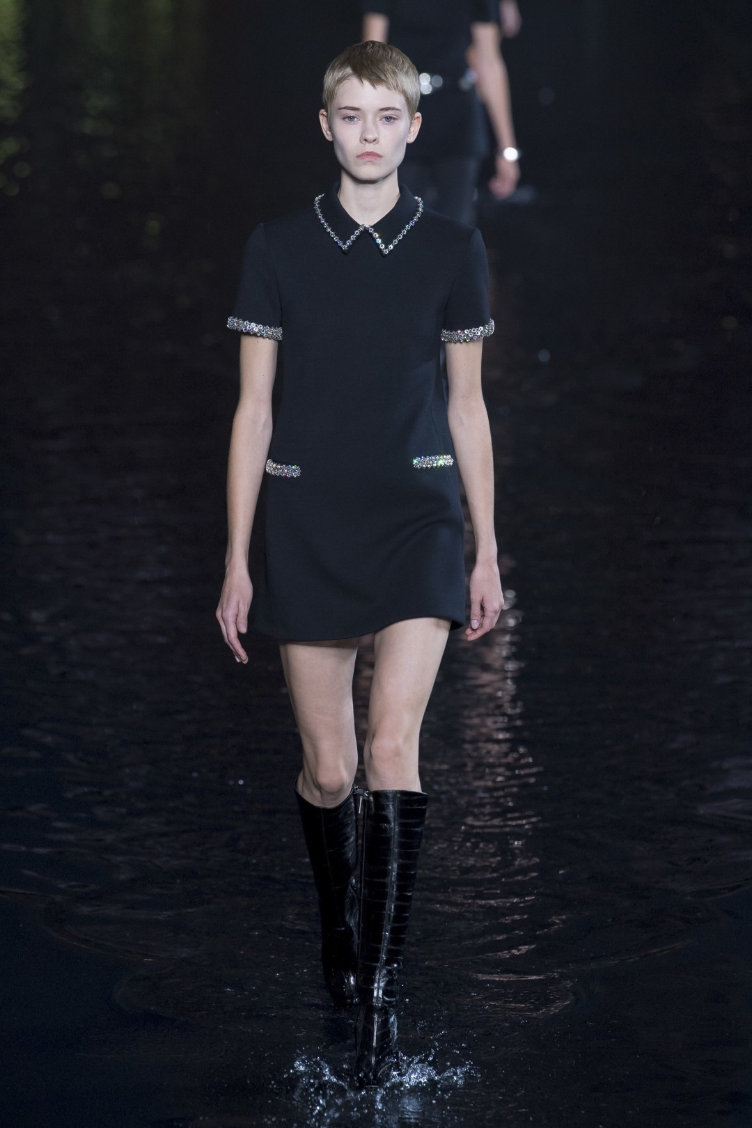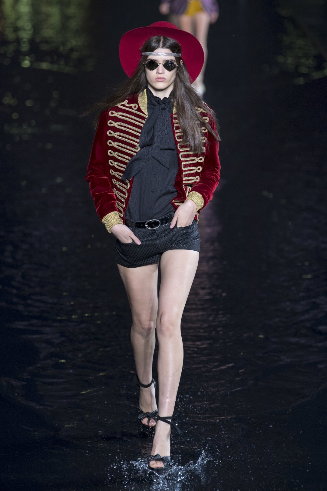 В Петербург приехала одна из самых провокационных коллекций сезона, представленная креативным директором Saint Laurent Антони Ваккарелло у подножия Эйфелевой башни в сентябре. В нее вошли гусарские пиджаки, надетые на прозрачные платья, ультракороткие шорты, сделанные из люрекса, барочные блузы, стилизованные поясами на голове, и вместительные рюкзаки, мимикрировавшие под банданы. Но самая функциональная вещь в ассортименте бренда – это купальник, который теперь можно носить не только на пляже: посмотрите на Эмбер Валлетту, вышедшую в нем (и в неоновой шубе Saint Laurent) на ковровую дорожку Met Gala, посвященного теме «кэмп».