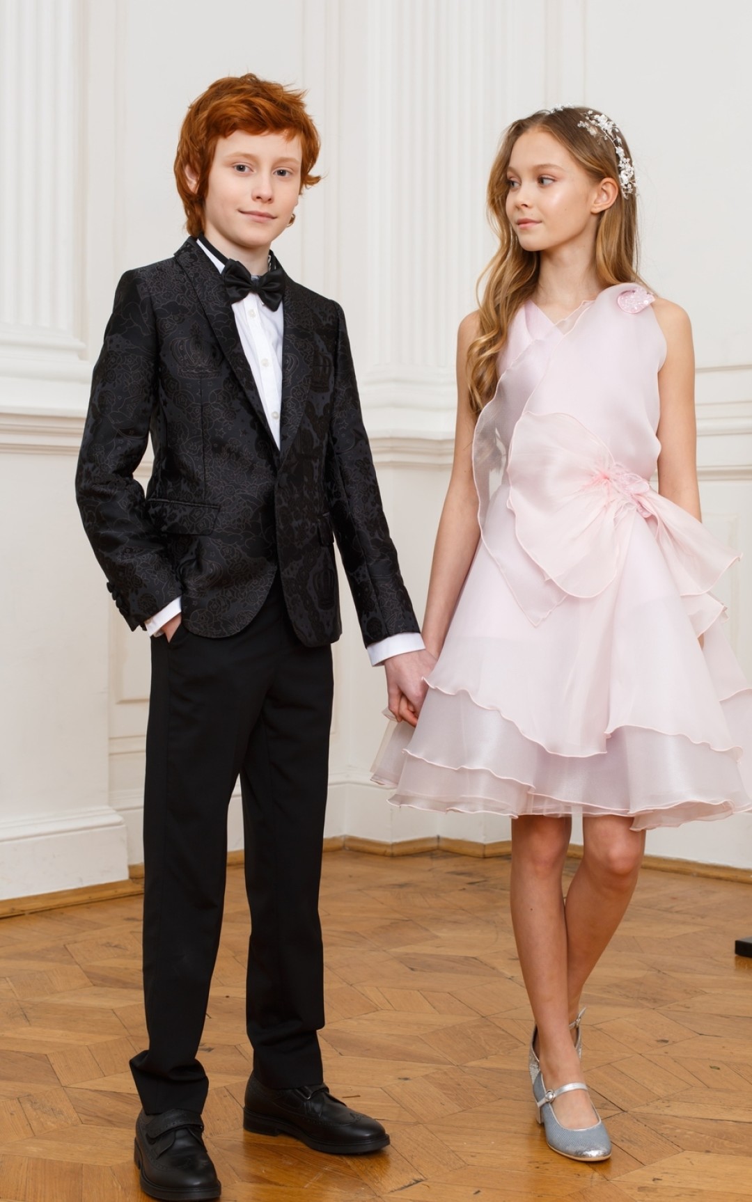 К концу учебного года в «Кенгуру» составили коллекцию для выпускных. В ней — платья мерцающих золотых оттенков David Charles и Lesy, наряды с цветочными принтами Monnalisa, c оборками — от Twin-Set, с пайетками — от Dior, с кружевом — от Stella McCartney. Для мальчиков приготовлены бабочка вместо галстуков Paul & Smith, блейзеры вместо смокинга от Gucci и брюки с лампасами от Dolce & Cabbana.
