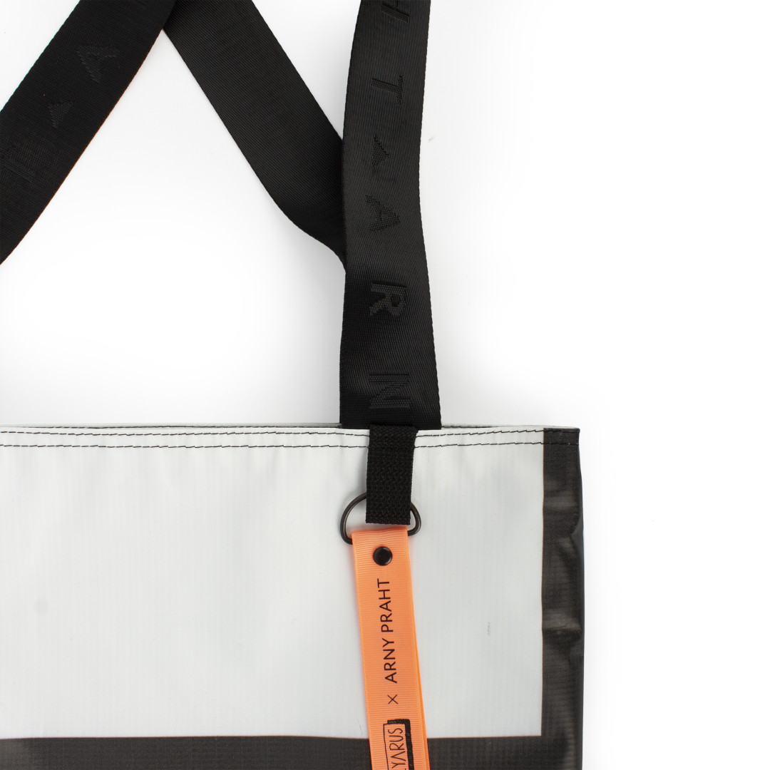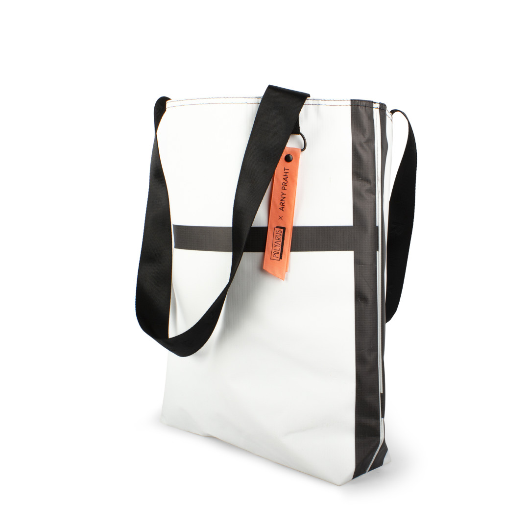 Петербургский бренд Arny Praht, чьи ультрамодные сумки из эко-кожи за пару лет захватили город, и марка Polyarus, известная аксессуарами из автомобильных камер и строительных цепей, объединились для создания коллекции шопперов. На их пошив ушли масштабные рекламные баннеры, которые анонсировали открытие одного из магазинов Arny Praht и вместо свалки отправились на переработку. Все получившиеся сумки отличаются друг от друга (так как сделаны из разных частей рекламного баннера), но продаются под одной и той же цене — 1290 рублей за штуку. Купить их можно в магазине Arny Praht, а также на сайте марки.