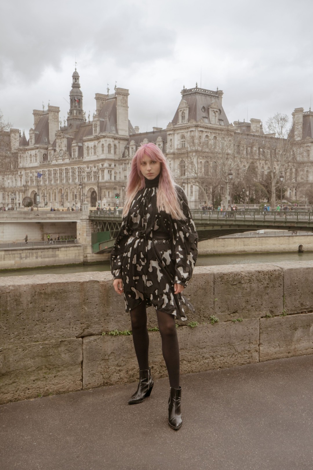 После своего первого показа в Петербурге, в съемочном павильоне киностудии «Ленфильм», дизайнер Юрий Питенин отвез весенне-летнюю коллекцию в прогулку по Парижу. Непромокаемые комбинезоны, велосипедки с контрастной отделкой, пальто с вышивкой бисером и платья с анималистичным принтом команда бренда Saint-Tokyo сняла на фоне Пале-Рояль и сгоревшего Нотр-Дама.