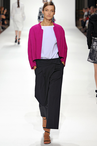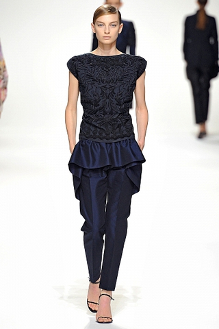 Бельгийский ум переработал испанские чакетильи в болеро с вышивкой, как у матадоров, и задрапировал брюки на бедрах. Лоскутные ткани и фирменная баленсьяжья скульптурность воссозданы в палитре белого, рыжего, полуночного синего, фуксии и бирюзы. Но главный здесь все же черный