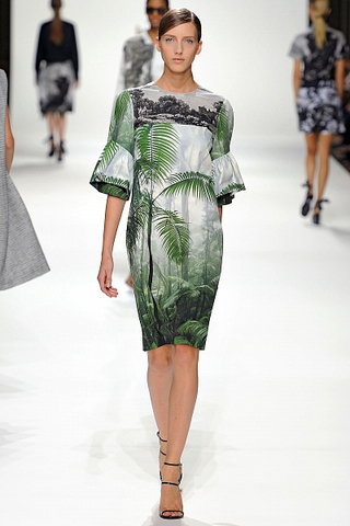 На прошлогоднем фестивале моды и фотографии в Йере Дрис ван Нотен, знатный любитель принтов, нашел себе нового партнера для коллаборации. Гипернатуралистичные работы английского фотографа Джеймса Рива (James Reeve) на платьях, юбках и блузах парятся с ботаническими гравюрами и натюрмортами семнадцатого века. Снимки ночного города с горящими в темноте огнями зданий Лас-Вегаса и Марселя, сделанные Ривом, издалека напоминают россыпь драгоценных камней.