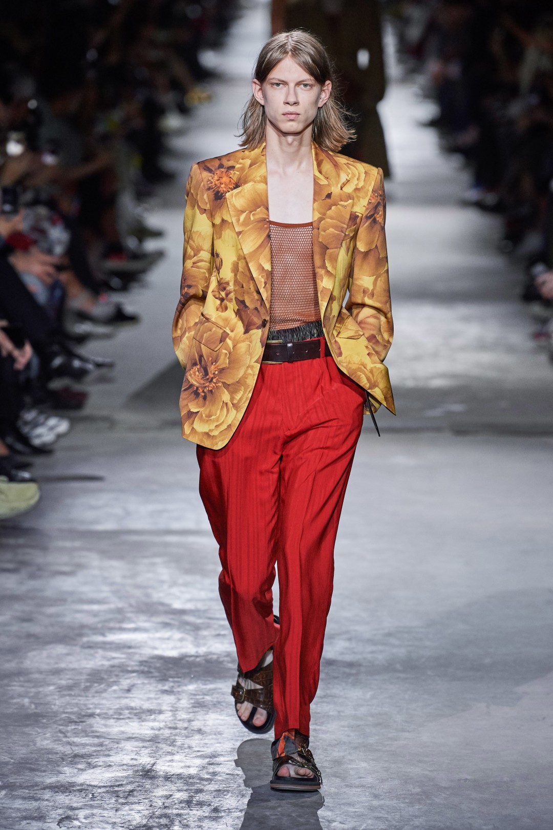 Все перечисленные Дрисом вещи миксуются не только с одеждой, утопающей в цветах, но и с леопардовыми пиджаками, кожаными шортами, двубортными пальто и дождевиками из ПВХ. Стайлинг образам делали биркенштоки, ковбойские ботинки, резиновые сапоги, а также обувь, похожая на чешки. И наверняка такая же удобная!