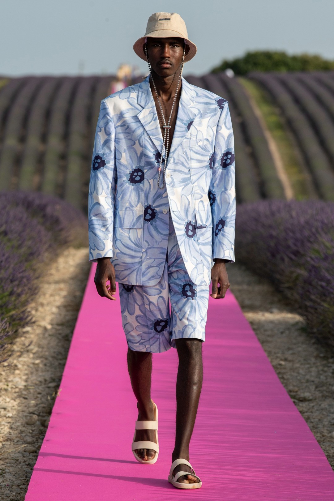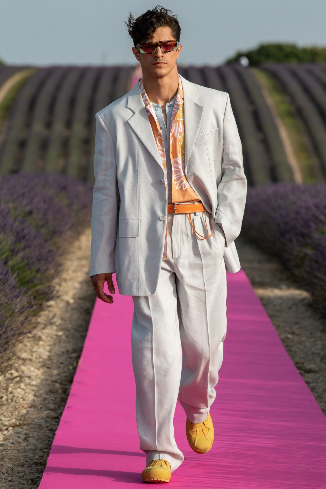 Симон Порт Жакмюс продолжает путешествовать по югу родной Франции вместе с поклонниками своего бренда. Если первую мужскую коллекцию Jacquemus он показывал на пляже близ Марселя, то десятилетие марки решил отметить на лавандовых полях в Провансе. Bureau Betak, которое продюсирует показы главных домов моды уже более 20 лет, расстелило между холмами розовую войлочную дорожку, по которой и ходили парни и девушки. Дизайнер решил сделать шоу совместным, чтобы показать все, за что мы полюбили его бренд.