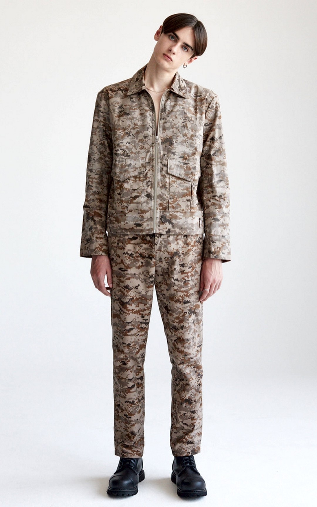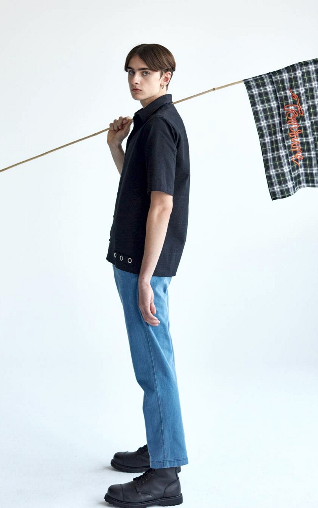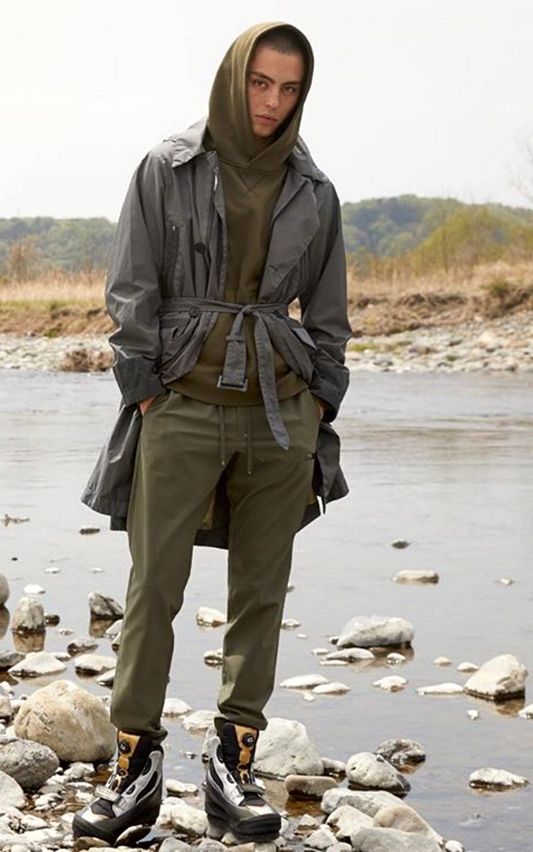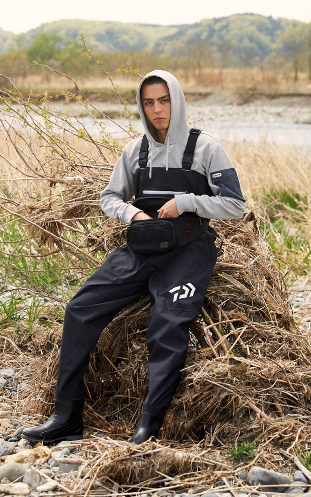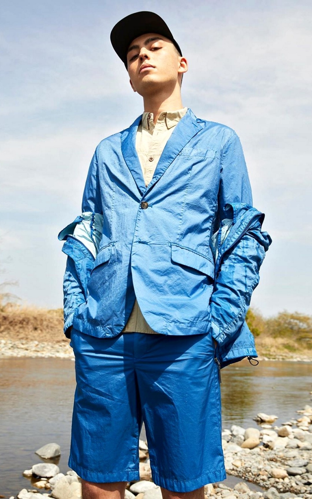 Целевую аудиторию этого бренда можно было бы описать так: люди, готовые уехать на рыбалку прямо из офиса. Рукава классических пиджаков, лонгсливов и рубашек D-VEC настолько эластичны, что в них удобно забрасывать удочку, а материалы минималистичных курток, бомберов и плащей проверены не только сильным дождем, но и контрастным душем. Отлаженная работа с нейлоном, неопреном, полипропиленом, льном и хлопком объясняется историей компании: до 2015 года она занималась исключительно производством экипировки дайверов и рыбаков. Отсюда и название токийской марки — «вектор дайвера», а также наличие в ассортименте воблеров и ультралегких зонтов из спиннинговых корпусов.