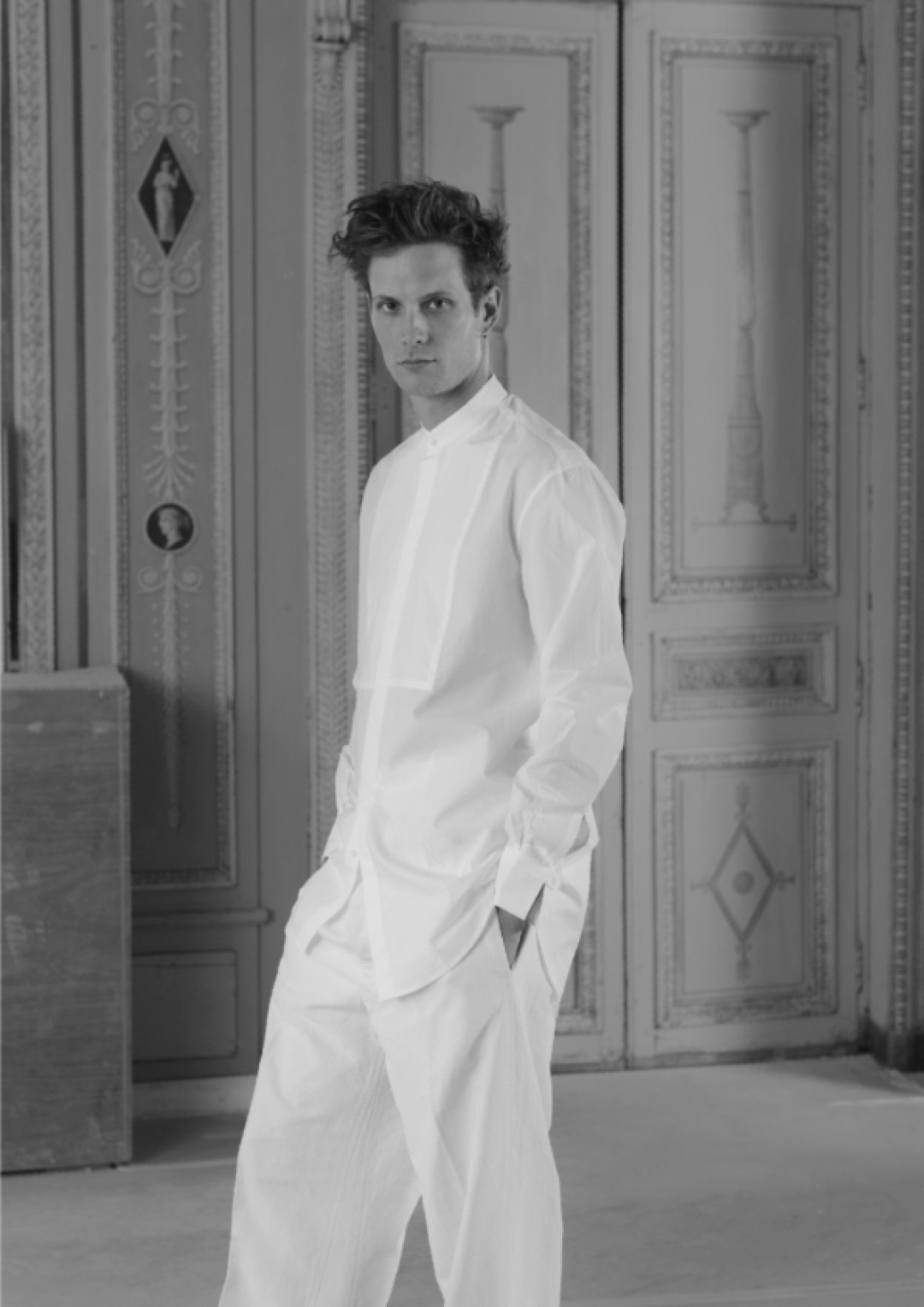 В трех коллекциях мономарки Bourrienne Paris X, созданной братом французского писателя Фредерика Бегбедера Шарлем, нет ни одной повторяющейся белой рубашки. Одна сделана из нормандского льна и украшена перламутровыми пуговицами, другая — из египетского хлопка и имеет длину индийской курты, а третья — из хлопка и льна и дополнена плиссировкой, сделанной вручную. Однако все рубашки (а в ассортименте бренда есть и мужские, и женские модели) одинаково промаркированы логотипами с арфой, цветами и бабочками. Эти же изображения можно увидеть в декоре отеля Bourrienne, с которого, собственно, и началась история марки: Шарль Бегбедер выкупил здание, где в свое время вели литературные дебаты Франсуа Рене де Шатобриан и Виктор Гюго, и под впечатлением от его истории и дресс-кода задумал делать белые рубашки по винтажным экземплярам и сравнительно демократичным ценам. Классическая модель обойдется вам в 180 евро, а удлиненная — в 500.