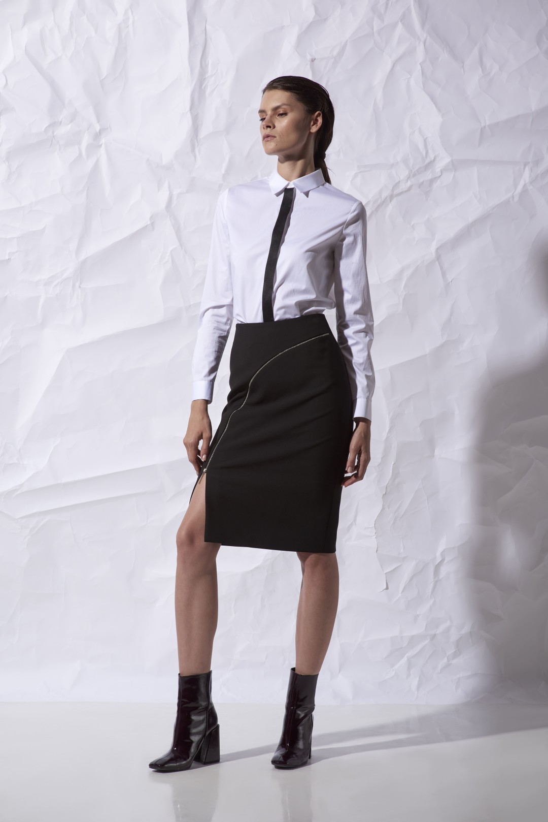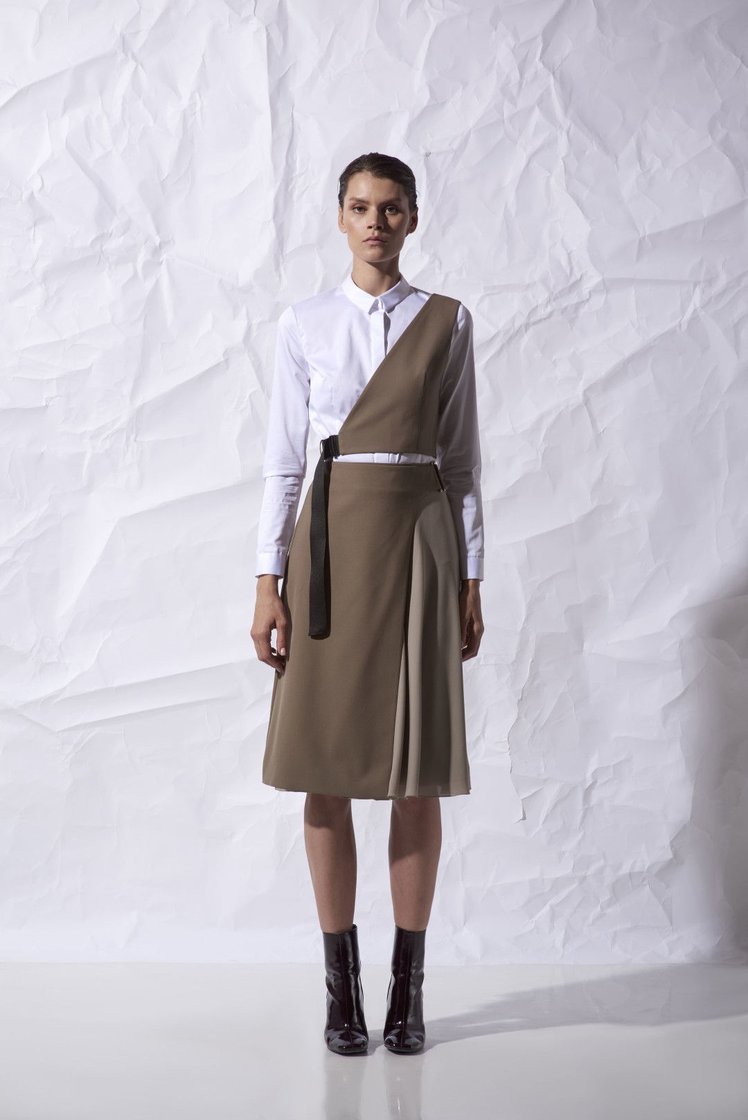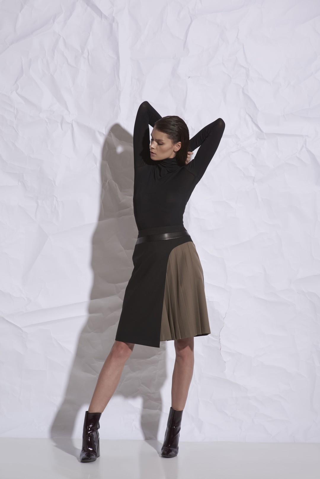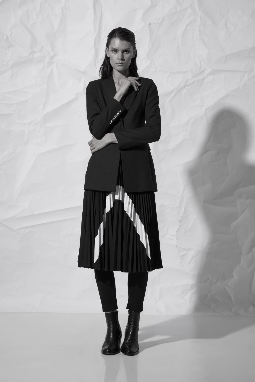 Если в прошлом сезоне дизайнеры российской марки Vassa & Co. водили нас в Музей американского искусства Уитни (в коллекцию вошли вещи с полосами, как у Ротко, монохромными принтами, как у Раушенберга, и экспрессивный красный цвет, как у Де Кунинга), то в этом знакомит с работами голландского абстракциониста Тео ван Дусбурга из собраний амстердамского музея Stedelijk. Геометричные элементы нидерландского художника, который вместе с Питом Мондрианом организовал движение «Стиль» и пропагандировал рационализм, прямоугольные формы и чистые цвета в искусстве, легли на асимметричные юбки, кашемировые бадлоны, клетчатые костюмы и шерстяные пальто. Если их расставить в ряд, как в бутиках бренда в ТРЦ «Галерея» и ТК «Невский центр» (или собственном гардеробе), получатся картины «Композиция в сером» или «Ритм русского танца» ван Дусбурга!