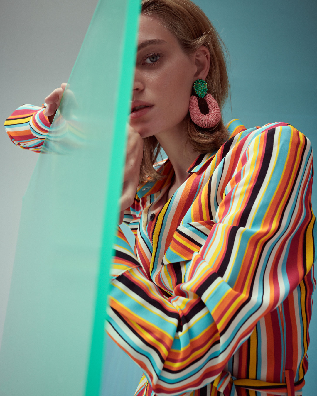 В ней главный дизайнер Laurèl Элизабет Швайгер сравнивает многогранность моды с женщинами разных культур, возрастов, стилей и предпочтений. И рассказывает об этом через цвета и фасоны 70-х годов: свободные платья-рубашки, ярко-желтые удлиненные пиджаки, футболки в бретонскую полоску, бомберы с цветочной вышивкой, комбинезоны с геометричным узором и инфантильными сумками в тон, которые уже продаются в петербургских магазинах марки.
